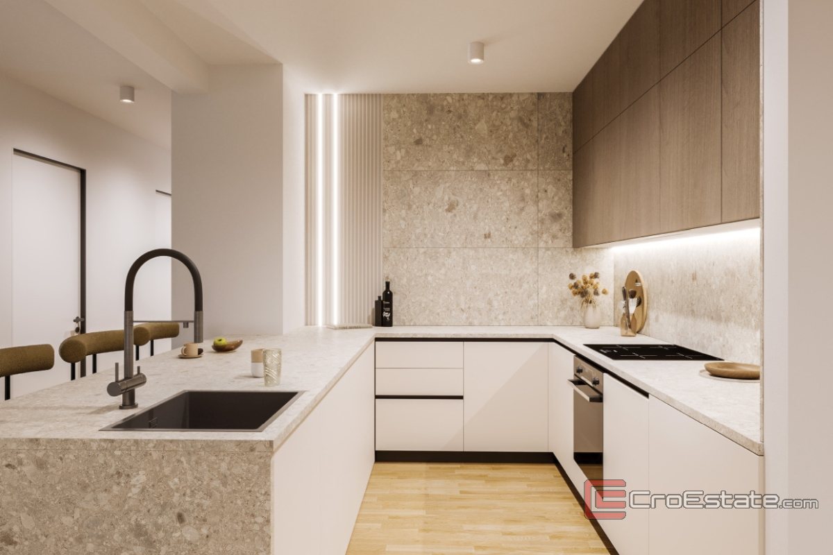 The property is located on the ground floor of the property, and covers approximately 57 m2 and consists of an entrance hall, a spacious living room connected to a modernly equipped kitchen and dining room, a bedroom with a wardrobe and a bathroom. From the bedroom, as well as from the living room, there is an exit to the balcony. This property offers an ideal combination of location, functionality and style, a perfect opportunity for those who want to live in a quiet environment, and yet close to all the amenities that Split has to offer.