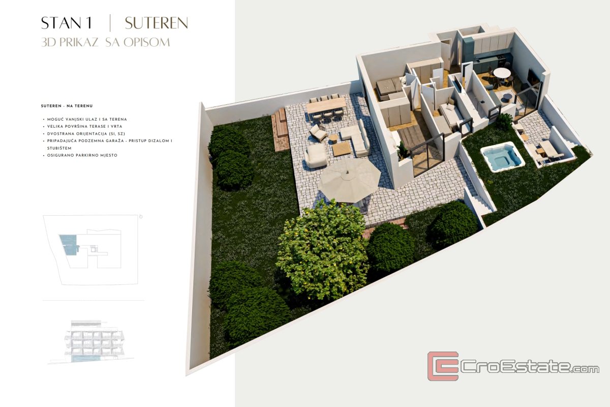 An additional benefit is the possibility of purchasing a garage space at a price of €2,300/m² or an outdoor parking space at a price of €1,250/m², which ensures a high level of comfort and security.