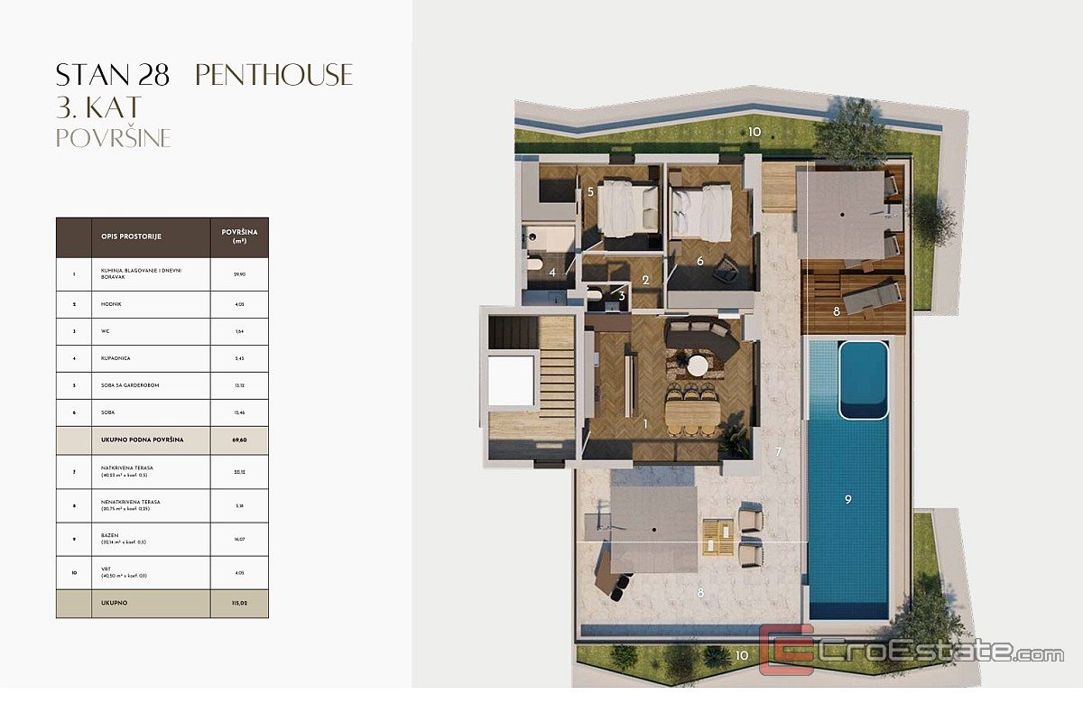 This penthouse represents a rare opportunity on the market – a combination of a prime location, modern luxury and a private wellness concept, ideal for those who want life at the highest level of quality and exclusivity.
