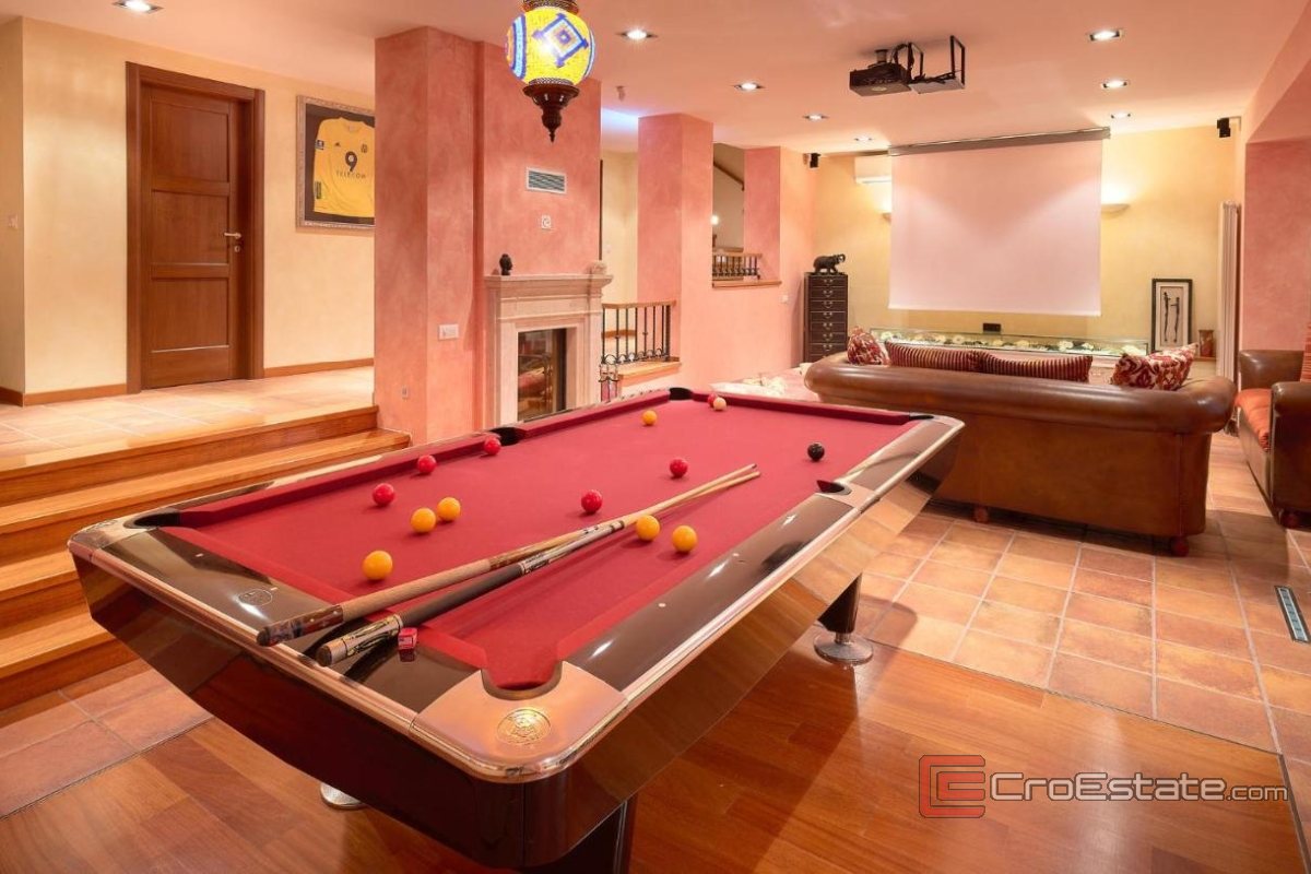 Spanning four floors, the villa provides complete privacy and luxurious features. In the basement, you can enjoy a billiard table, a wine cellar, a home theater, a kitchen, and a bedroom with an en-suite bathroom, with direct access to the pool and jacuzzi.