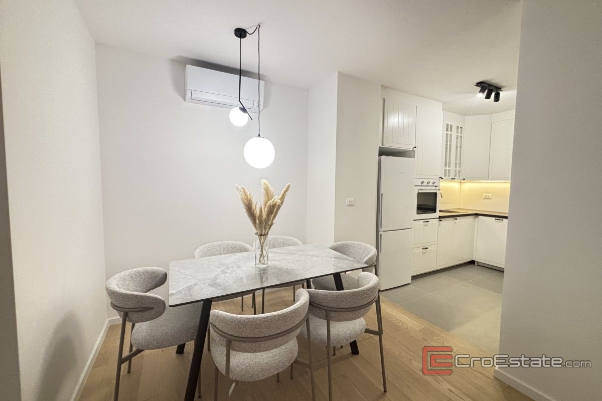 A modern two-bedroom apartment is for rent in a great location in a new building in Split, in Žnjan. The apartment is located in a newly built residential building near all the necessary amenities for a quality life (bakeries, supermarket, bus station, educational institutions, etc.).