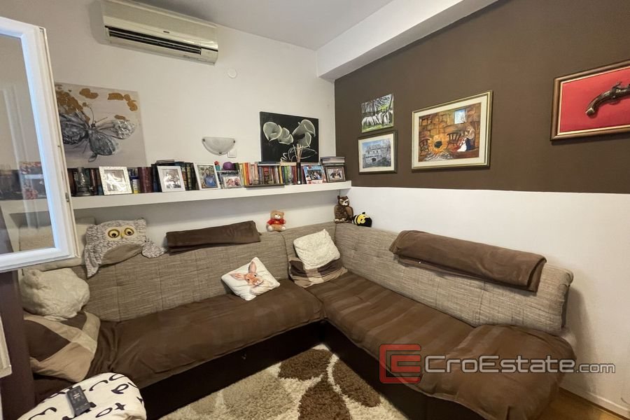 On the second floor is a smaller one-room apartment of approx. 35 m2 and a terrace of approx. 10 m2. On the same floor is the entrance to the two-story apartment, which consists of a living room and a spacious kitchen with a dining room and a bathroom. Internal stairs lead to the second floor of the apartment, where there are three bedrooms and a large terrace with a view of the sea and the city of approx. 40 m2.