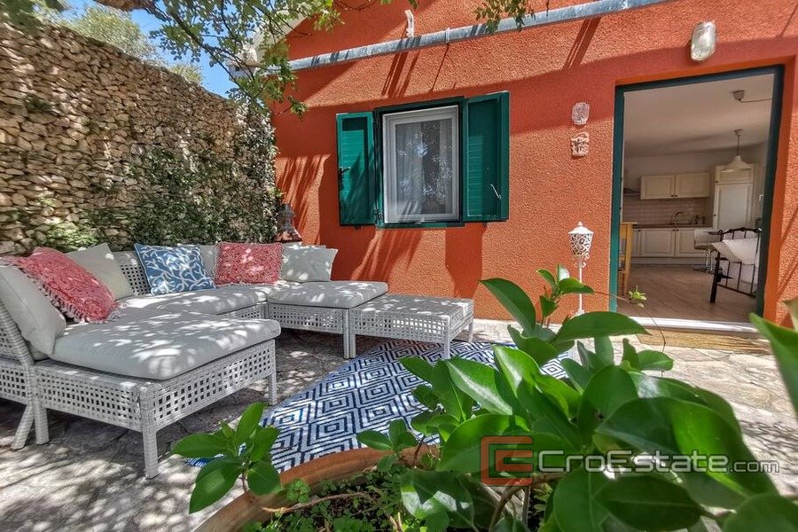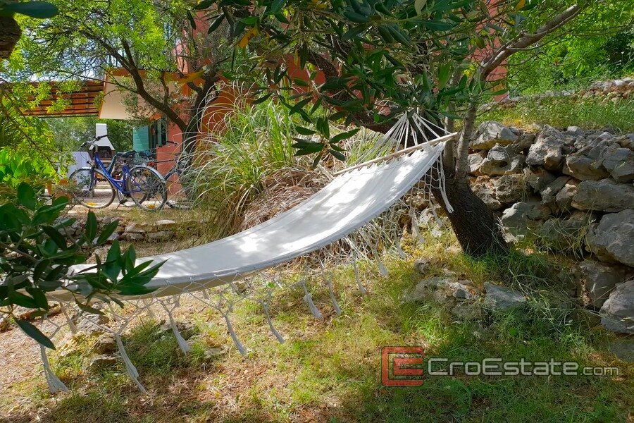 The yard of this house has been transformed into a real small Mediterranean garden with a stone path, surrounded by old Dalmatian dry walls, full of Mediterranean medicinal plants, olive, carob and almond trees with plenty of corners for sitting and resting as well as a barbecue area.