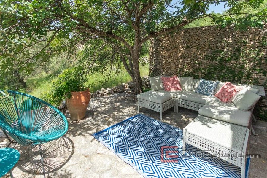 - On the first floor, which has a separate entrance, there are two rooms, a bathroom and a living room with a kitchen and a dining room, again with access to the southern terrace and the western terrace, where there is a set of seating under the carob and almond trees, which provide natural shade in the hot summer months , an ideal summer space for meditation and relaxation.
