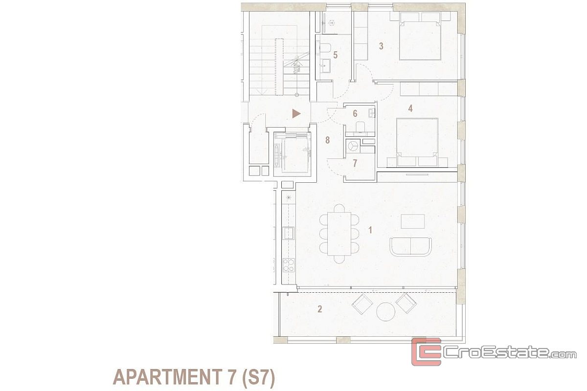 On the third floor of a modern residential complex in a quiet place near Trogir there is a comfortable two-bedroom apartment, ideal for living or tourist rental. Thanks to its excellent location, close to beaches, restaurants and all necessary amenities, as well as Split Airport, which is about 7.5 km away, the property offers the perfect combination of peace and accessibility.