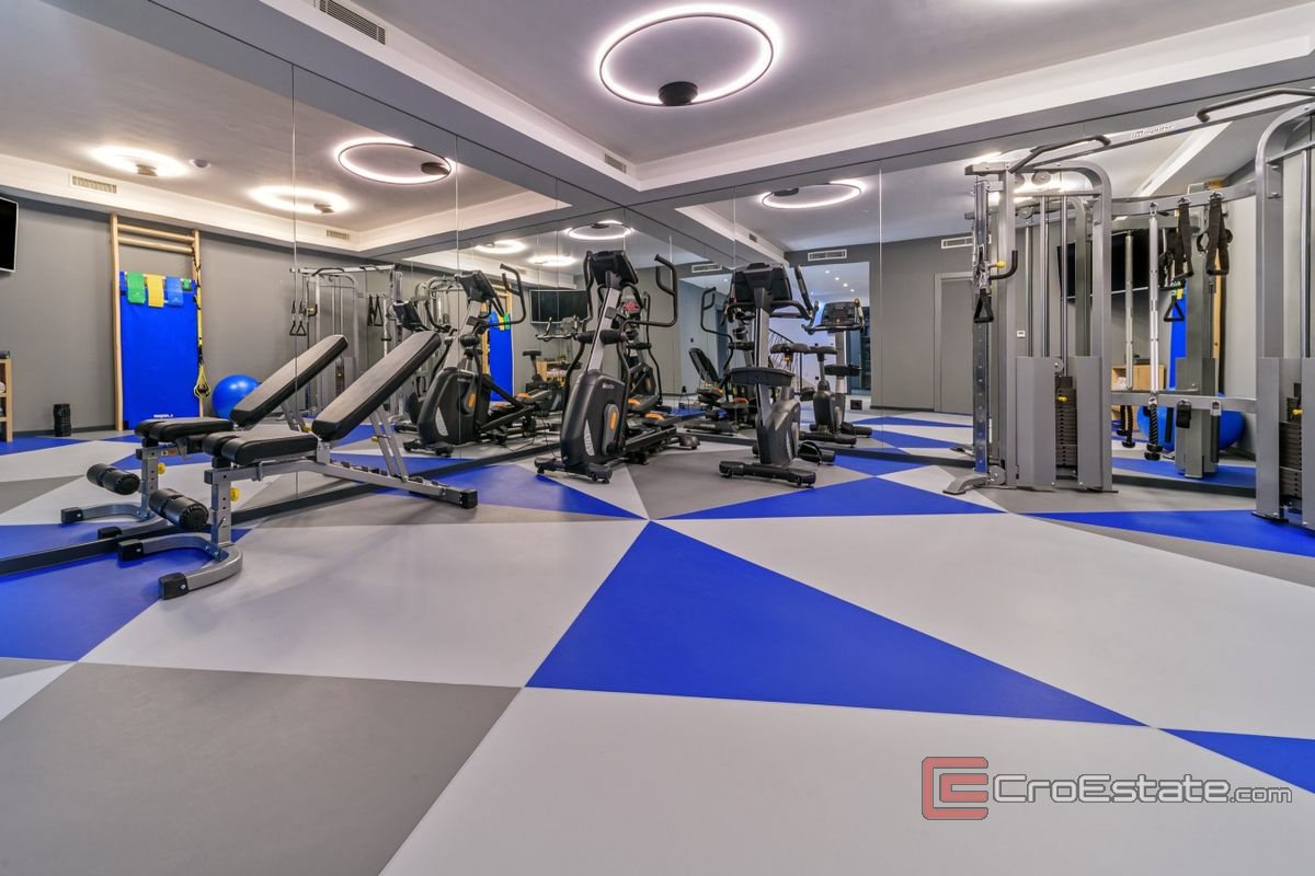 - In the basement there is a laundry room, a bathroom and a superbly equipped gym for exercise as well as a sauna with a shower.