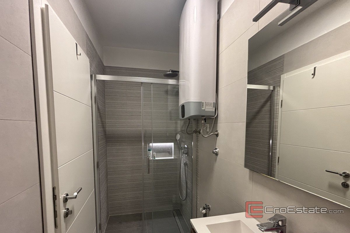 For sale is a newly built one bedroom apartment in Trogir, on the south side of the island of Čiovo. It is located just 10 minutes walk from the center of Trogir and all the amenities on the island that make this location an attractive place to live and relax. The apartment is northeast facing and is located on the ground floor of a modern residential building with an elevator and with a total of 3 floors.