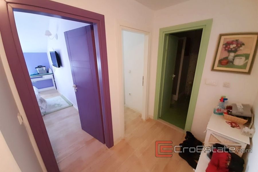 The whole apartment is nicely furnished and provides a feeling of a comfortable stay, and is for sale furnished. It has been carefully maintained and is in excellent condition. Given its location in a quiet neighborhood, the property in question can be very interesting for solving the housing issue, since the price includes a spacious garage and an additional parking space (total area of 40 m2). All facilities necessary for normal life are within walking distance, while the strict center of Trogir is at the already mentioned distance of 500 meters.
