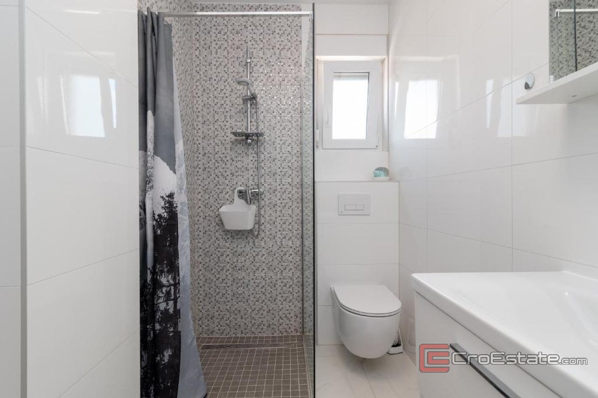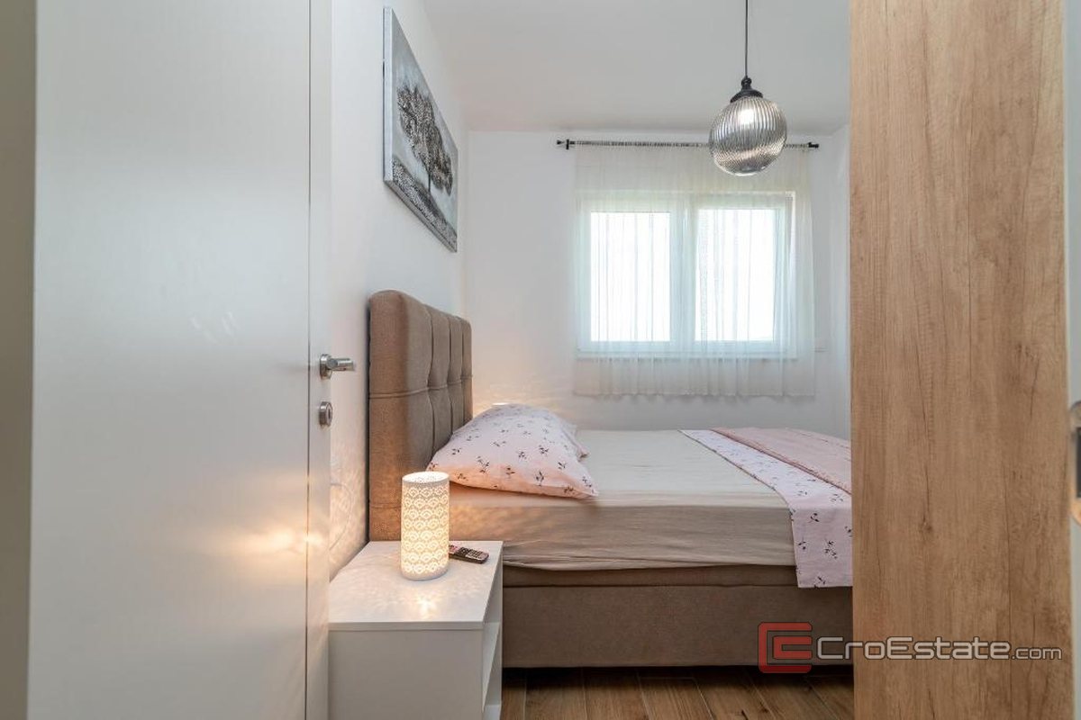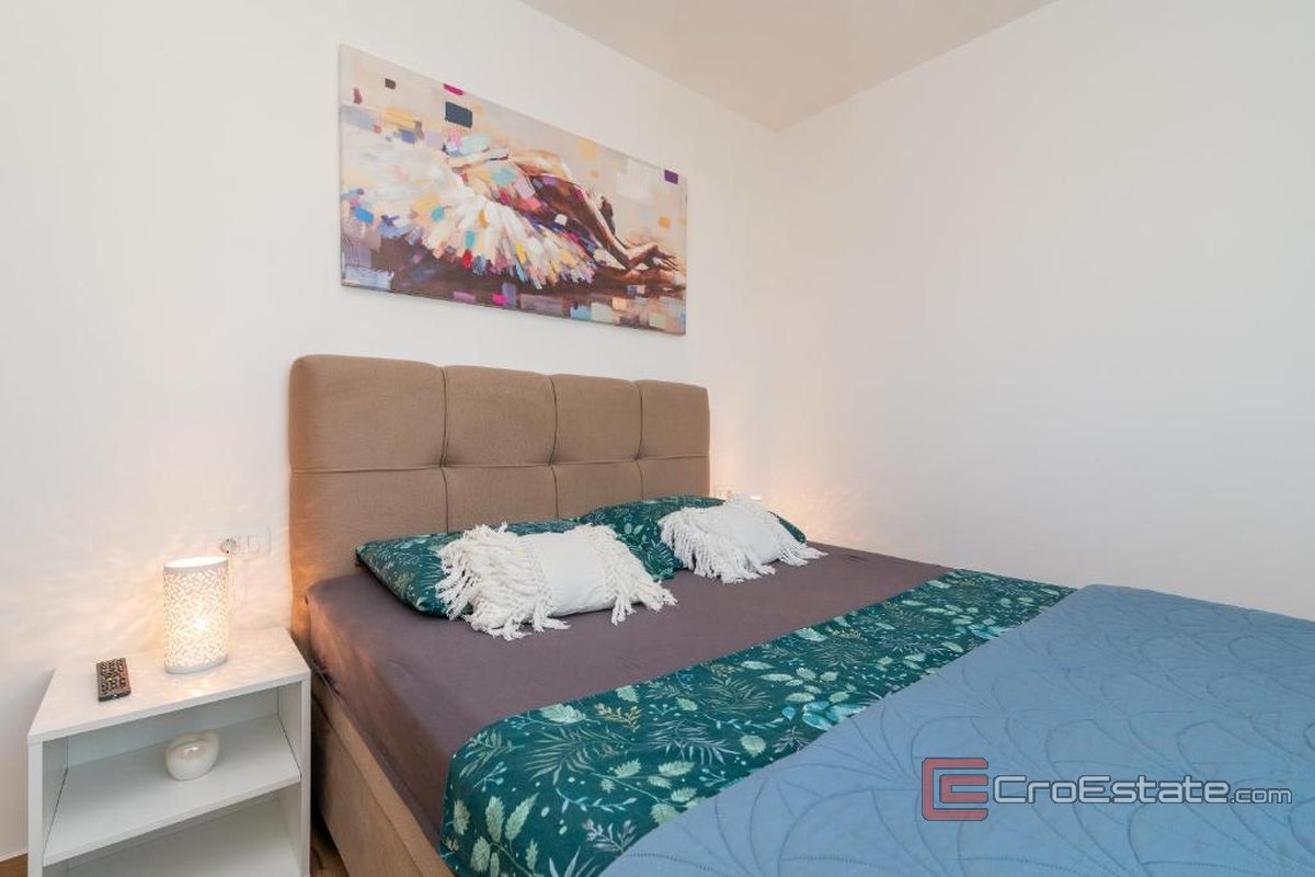 A two-bedroom apartment for rent in Trogir with partial sea view and swimming pool. The apartment is located in a residential building with an elevator near all the necessary amenities for a quality life (bakeries, supermarket, hospital, bus station, pharmacy).