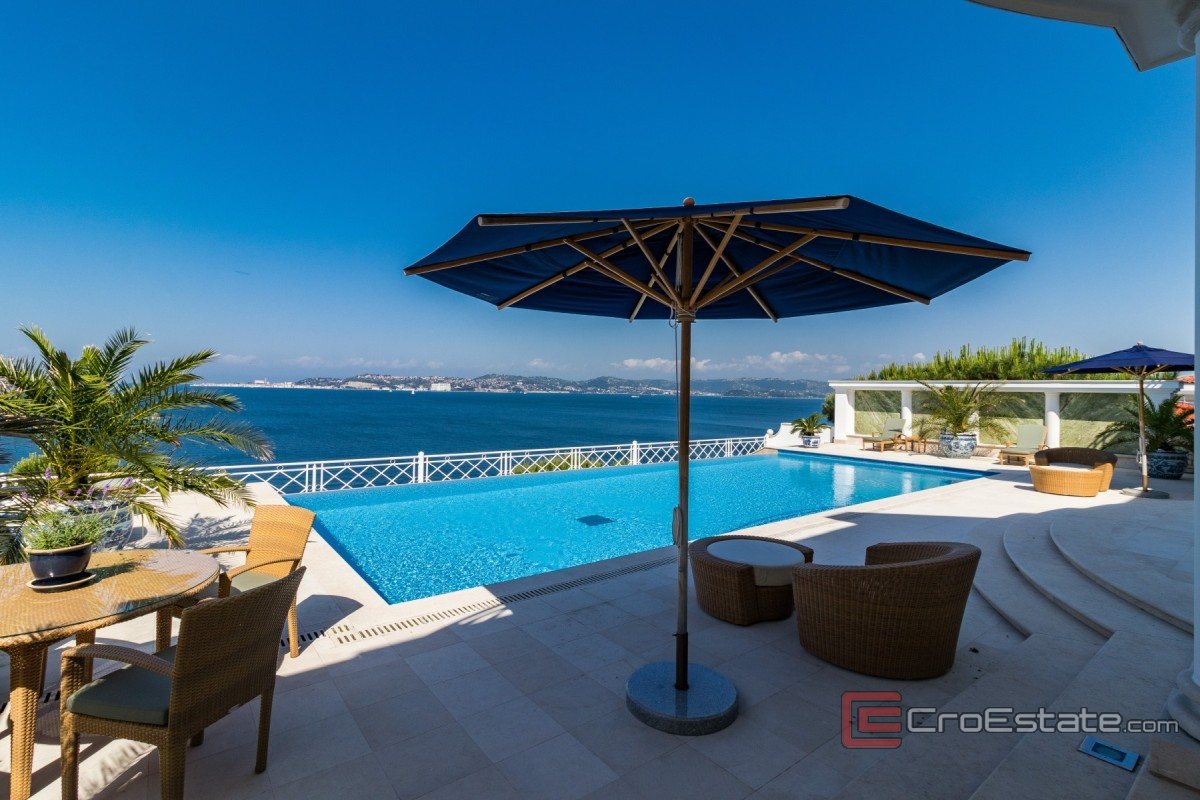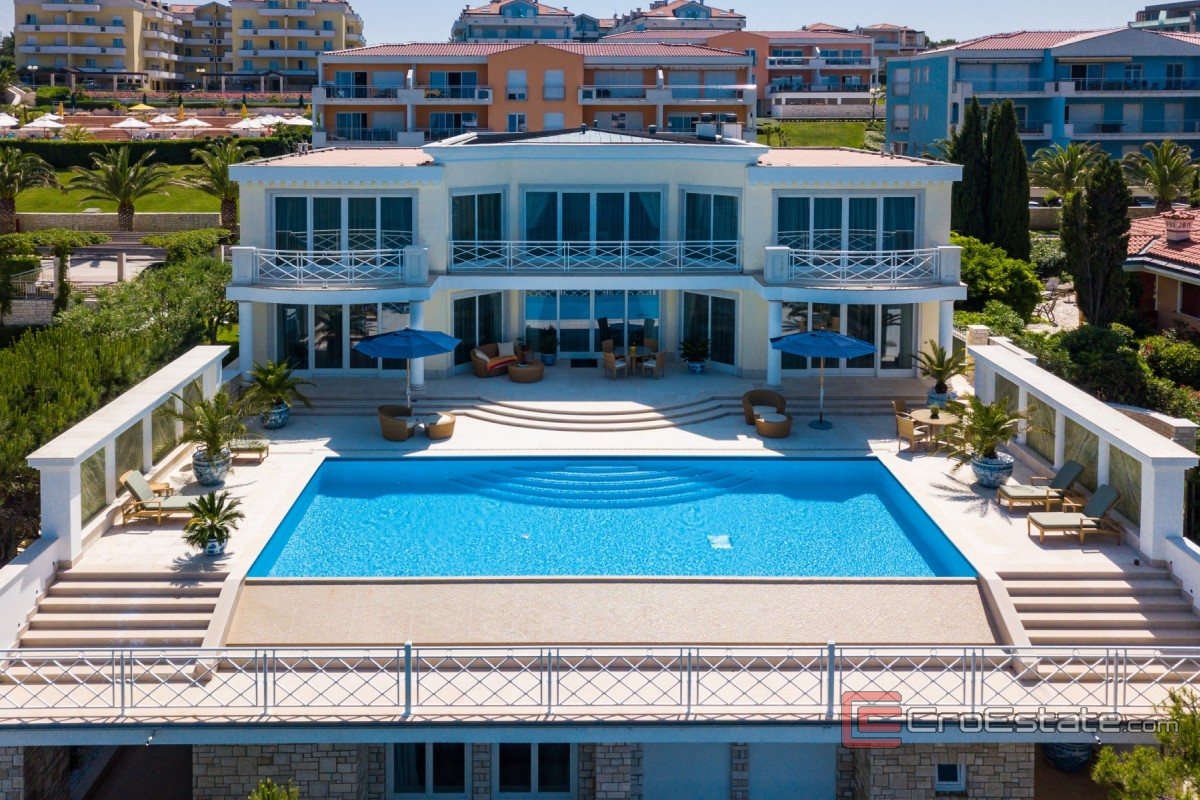 Situated first row to the sea in the prestigious location of Crveni Vrh in Umag, this luxury villa with a total living area of approximately 1000 m² represents a top-class property in one of the most attractive locations in Istria. Thanks to its elevated position, the villa offers open and unobstructed views of the sea, the Slovenian and Italian coasts and the Alps.