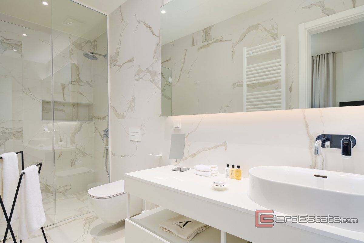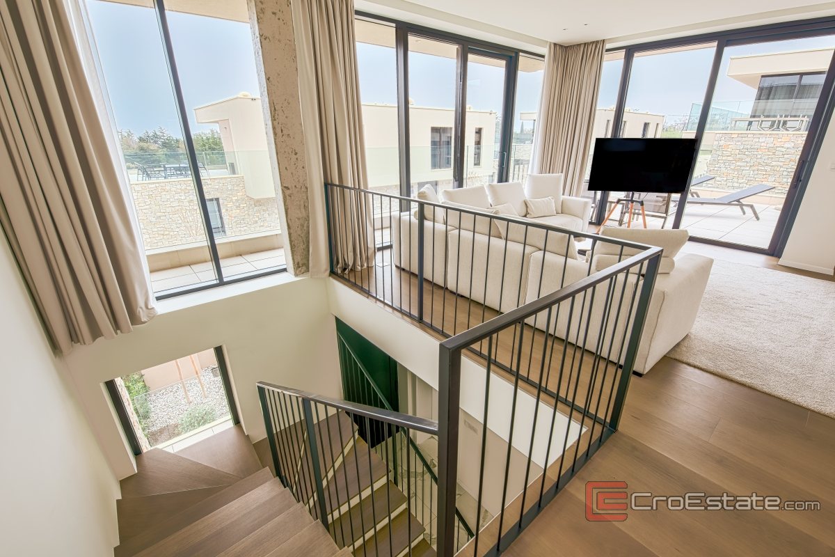 A luxury villa located within a modern resort in Savudrija, Istria, exudes peace and privacy. This luxury villa consists of a basement, a basement, a ground floor and a first floor. The living area of the property is 255.40m2 with an additional 26.80m2 and a 46.10m2 roof terrace.
