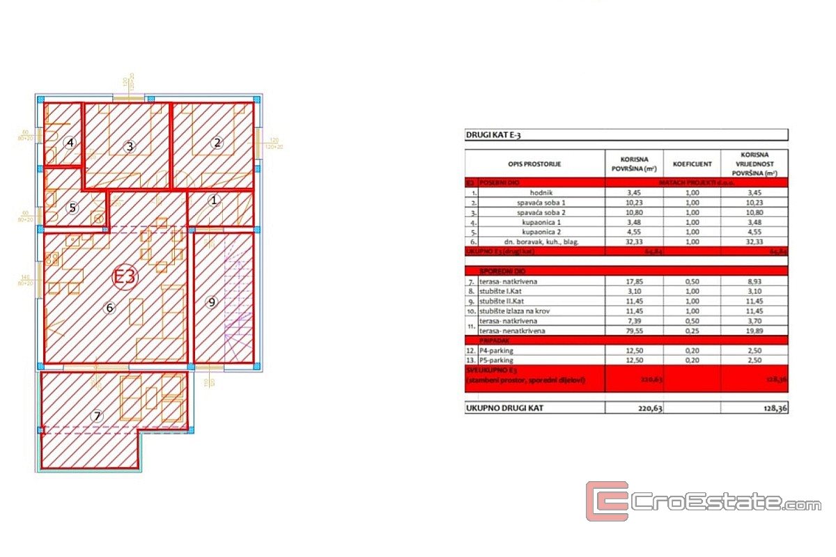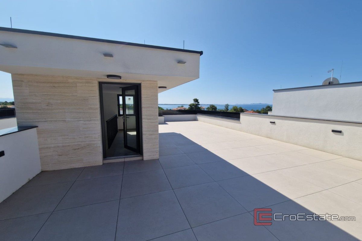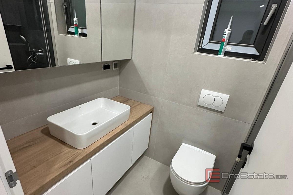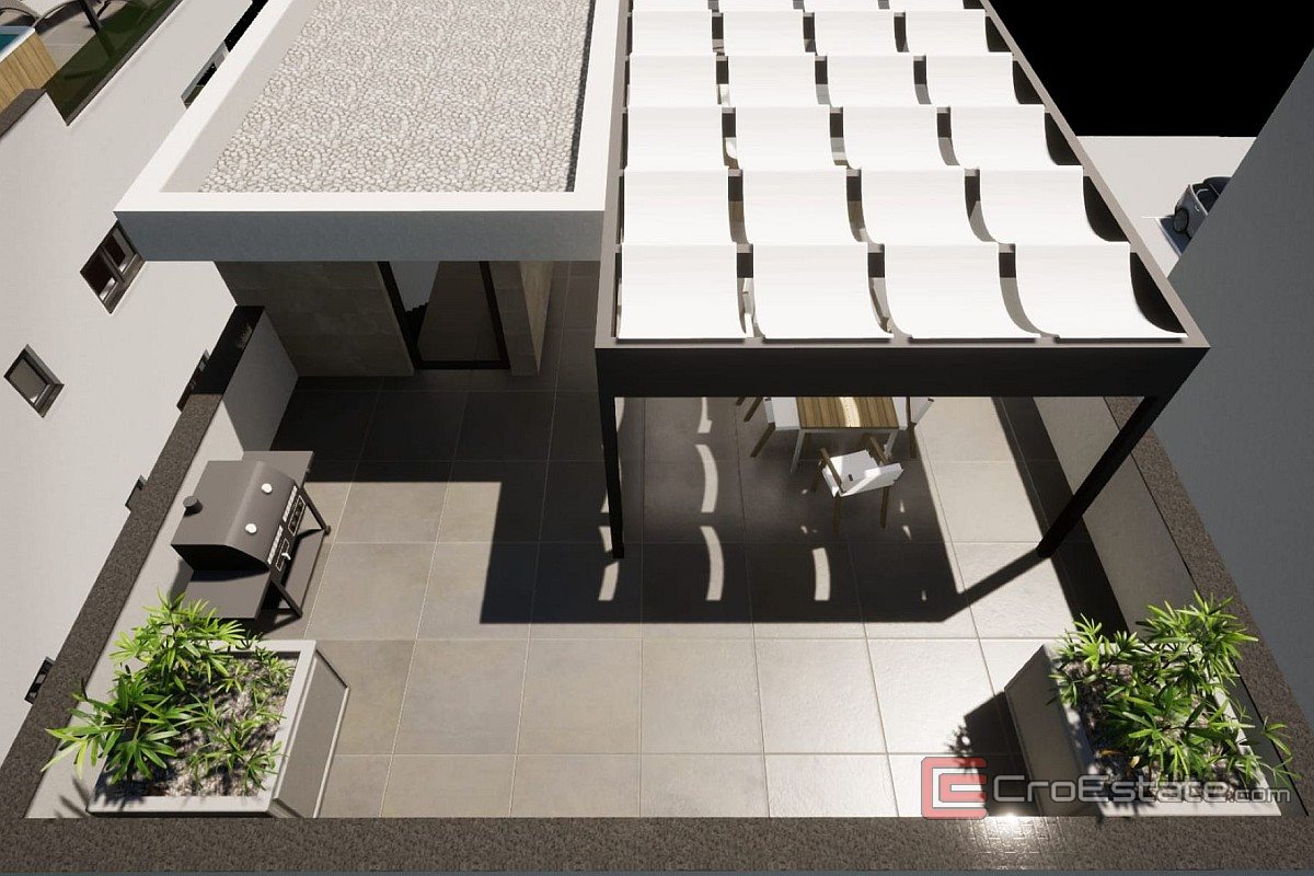 For sale is a modernly furnished apartment located on the second floor of a small residential building in the center of Vir. This is a new building built according to the latest construction standards, with top-quality materials and attention to every detail. The apartment covers the entire floor and includes two bedrooms, one of which has its own bathroom, a living room with kitchen and dining room, a terrace and a roof terrace that belongs exclusively to this apartment. The southern orientation ensures natural lighting and a pleasant atmosphere, while carefully selected equipment and modern solutions, such as underfloor heating, air conditioning and recessed lighting, guarantee maximum comfort. Special emphasis is placed on the terraces that offer preparation for a jacuzzi and the possibility of installing a pergola, which makes the stay even more pleasant and functional.