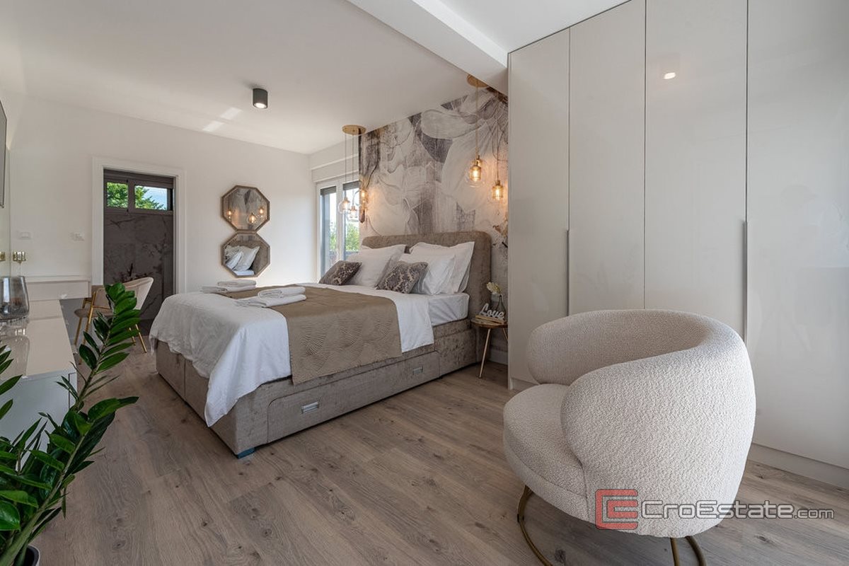 This spacious house of 212 m² is located on a plot of 750 m², just a 600-meter walk from the beach. With a modern design with lots of glass and lush surroundings, this villa offers a sun deck, swimming pool, garden, outdoor shower and ample private parking. On the first floor, on the ground floor, there is an "open space" kitchen, dining room and living room, and a bedroom on the ground floor with its own bathroom. Upstairs there are three more bedrooms, also each with its own bathroom, which makes all rooms "en suite". Perfect for private or commercial use, this villa promises peace, comfort or continued successful business.