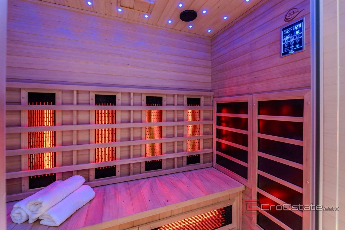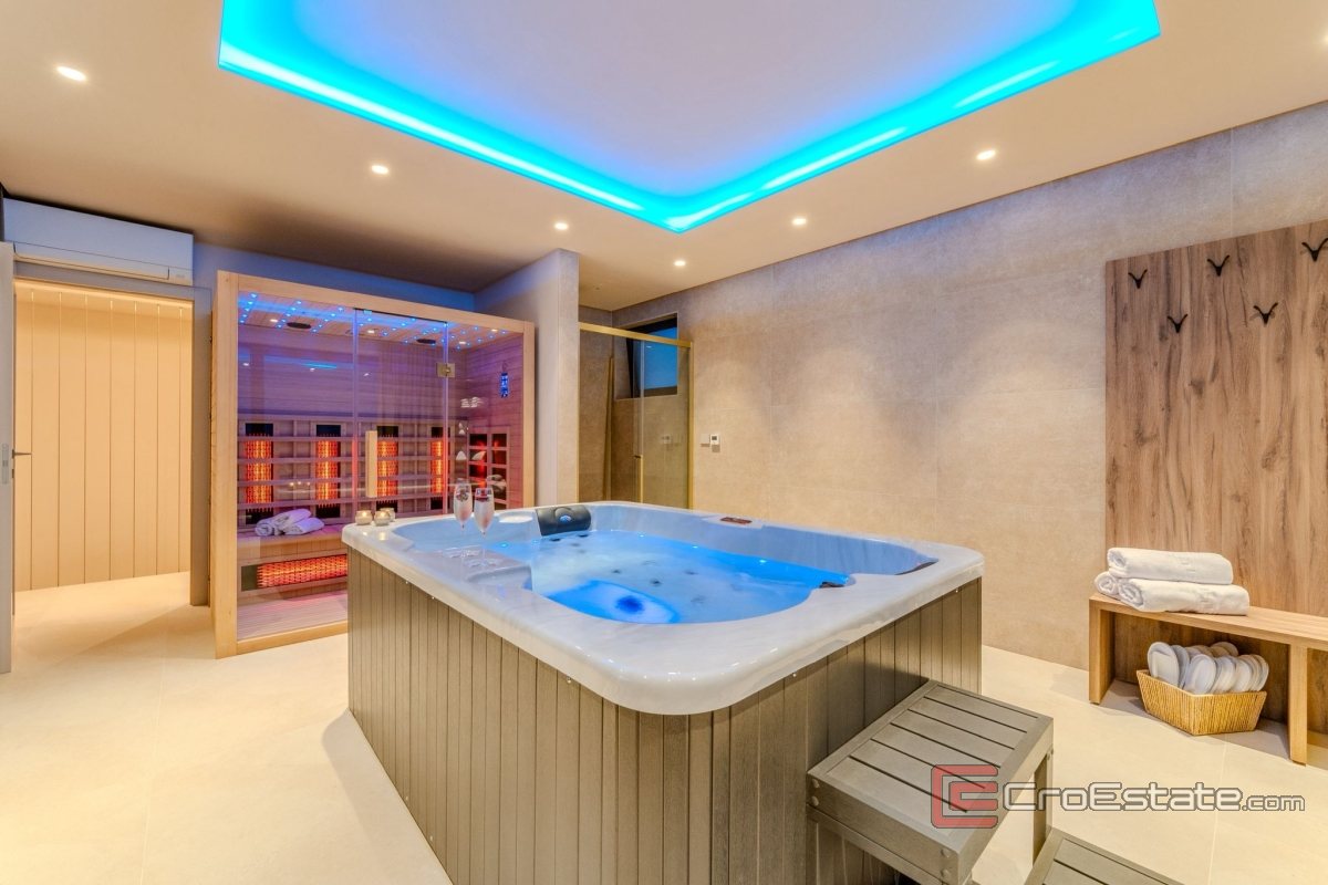 The upper floor offers a special experience, with a jacuzzi and sauna with a large terrace and spectacular panoramic sea views.