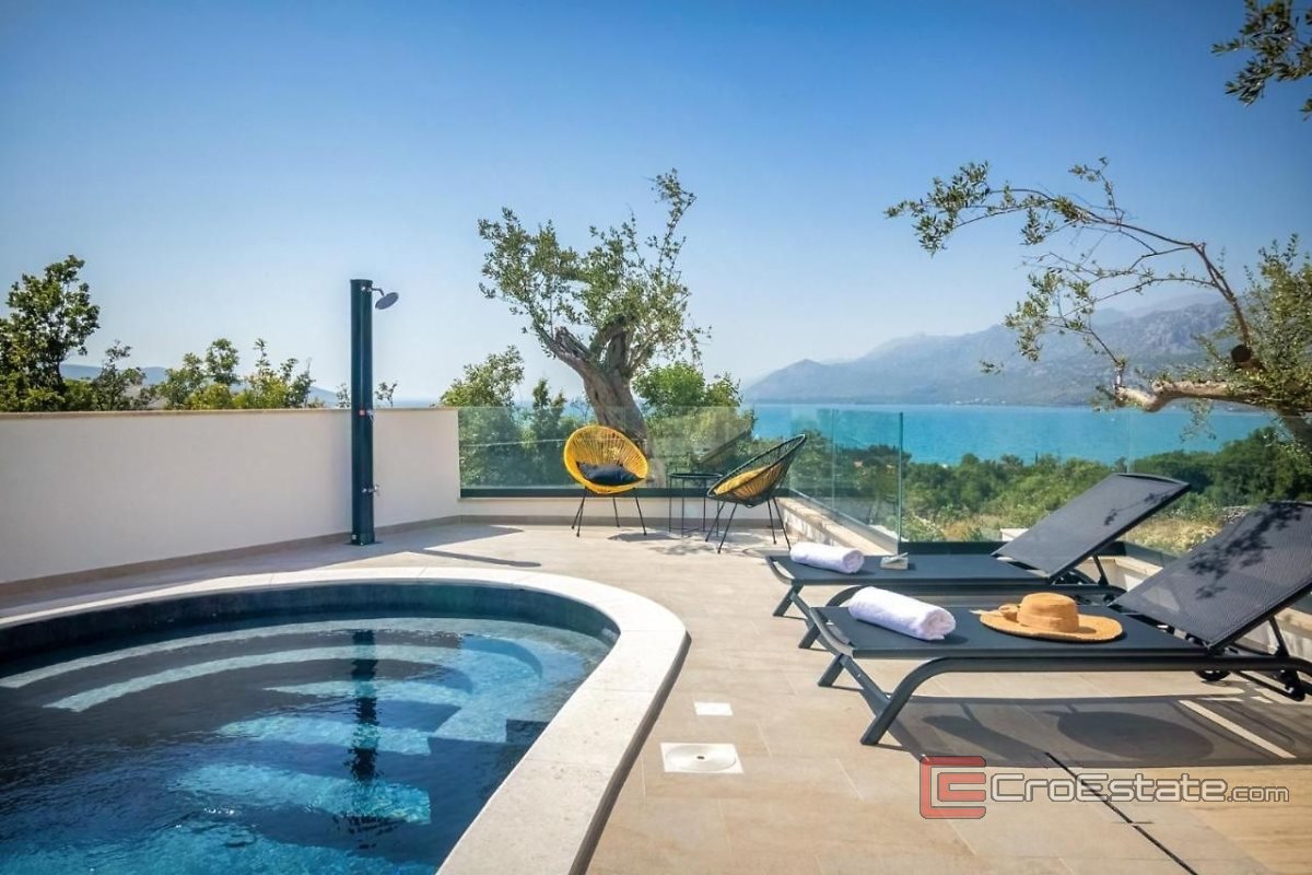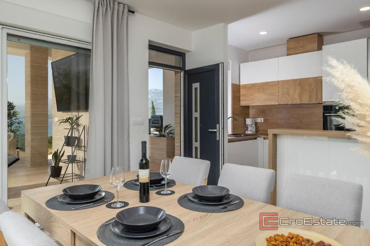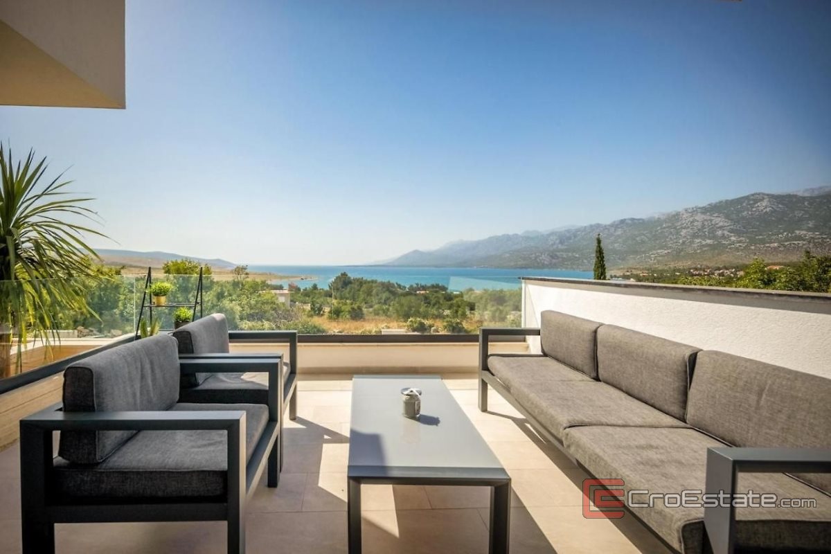 Located in a small picturesque village, this modern house near the city of Zadar offers peace and comfort near the beach. It consists of a basement, ground floor, and an upper floor. The ground floor includes a 48 m2 space that can be used as a studio apartment, playroom or storage.