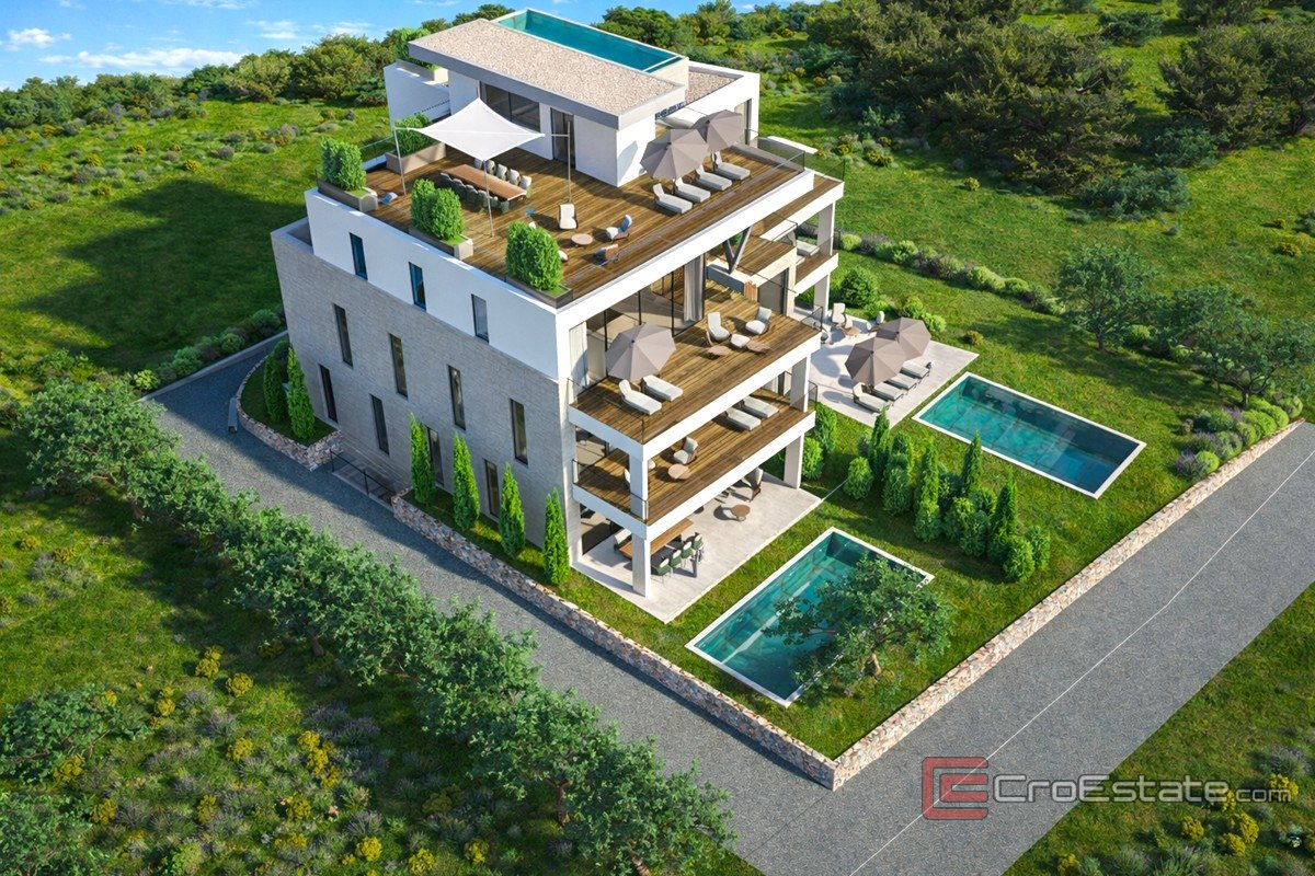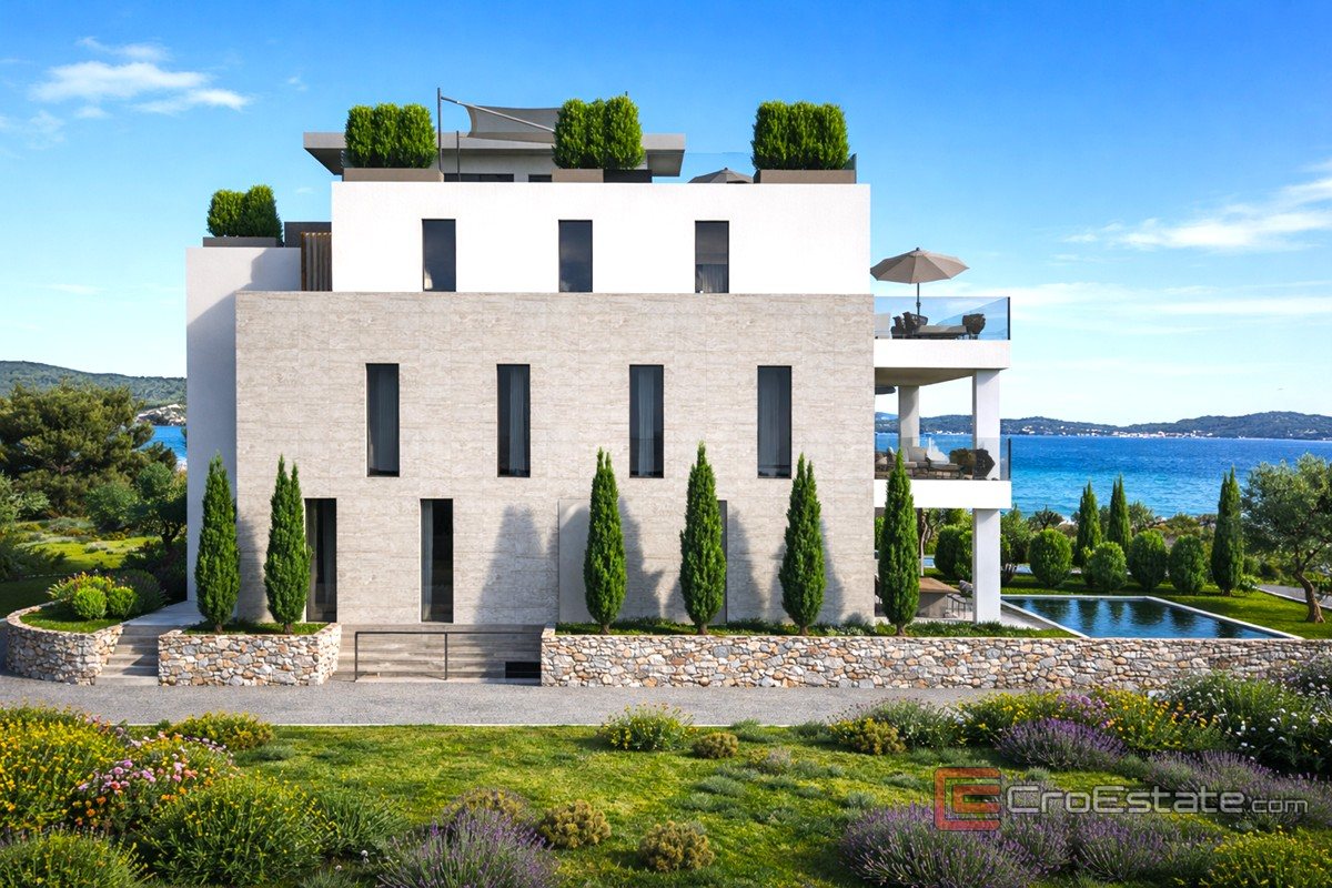 For sale are luxurious and modernly designed apartments in a new building, ready for first move-in, located in the first row by the sea. They are located in an extremely attractive and quiet location, just a few steps from the arranged beach and crystal clear sea. This property represents an ideal combination of top-quality construction, elegance and prestigious position, perfect for both your own stay and as an excellent investment for tourist rental. The location provides complete peace and privacy, with immediate proximity to all necessary amenities – restaurants, marina, shops – and excellent transport connections to Zadar and the airport, only a ten-minute drive away.