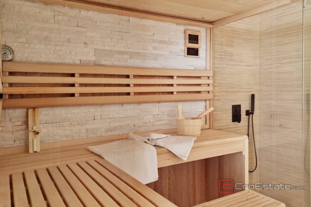 The villa is fully equipped, modernly decorated and ready for use. In the spacious yard there is a swimming pool and parking for three cars, while on the ground floor of the house there is a jacuzzi and a sauna.