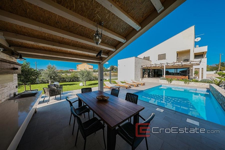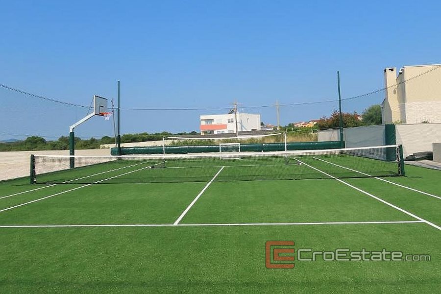 The property is located in a prime location, near the bustling city of Zadar. The property consists of two existing residential buildings; modern house with three bedrooms and a separate apartment with modern facilities. In addition, it boasts a large outdoor area with football, tennis and basketball courts, perfect for recreational activities, as well as a garden and children's playground.