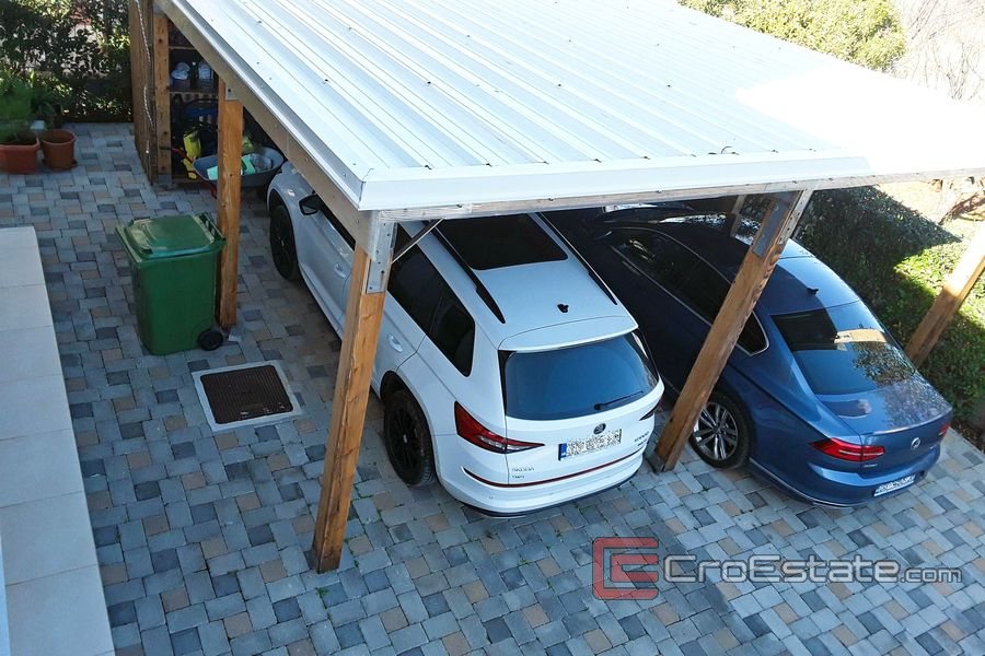 The whole garden is arranged in a cultivated garden equipped with automatic irrigation. On the spacious garden there is a large pool of 50m2 with sunbathing areas, and in its back there is a large parking space.