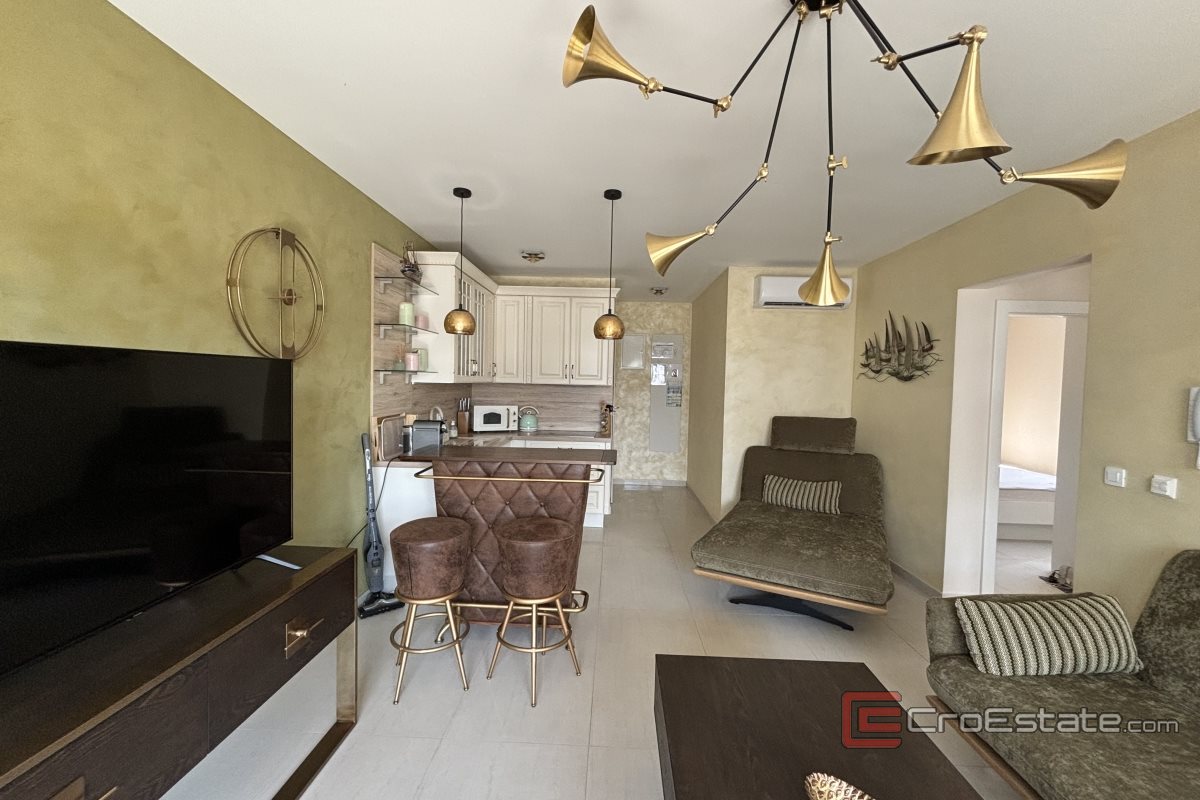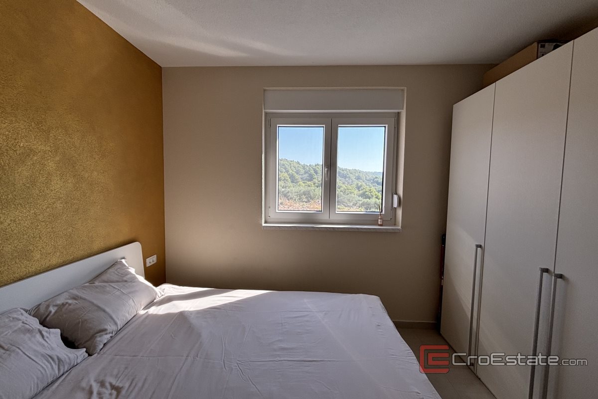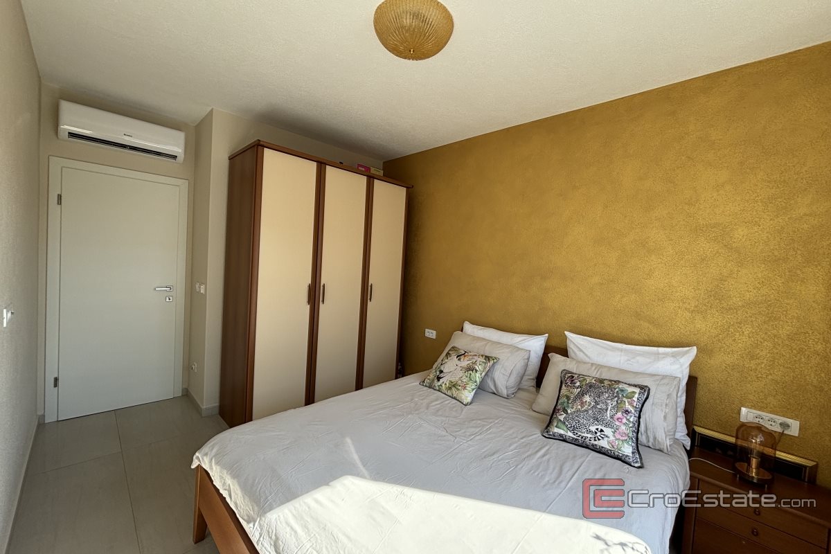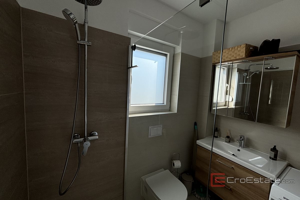 Un appartement de deux chambres à vendre à Okrug Gornji dans un immeuble nouvellement construit. L'appartement est situé à proximité de toutes les commodités nécessaires à une vie et des vacances de qualité (boulangerie, supermarché, plages, cafés, pharmacie) et dispose d'une vue partielle sur la mer.