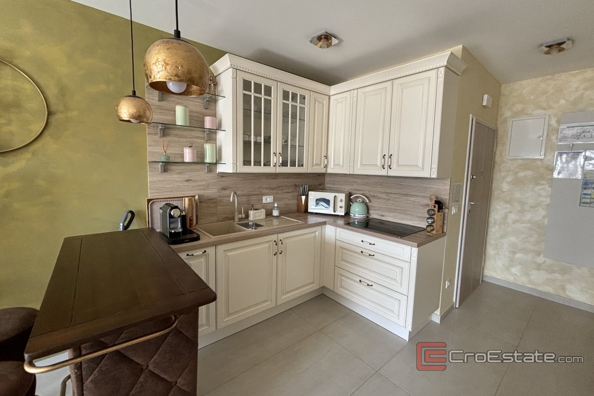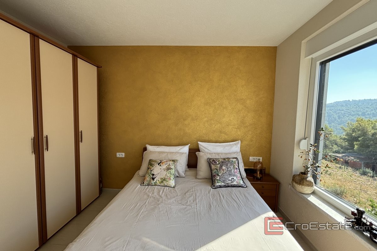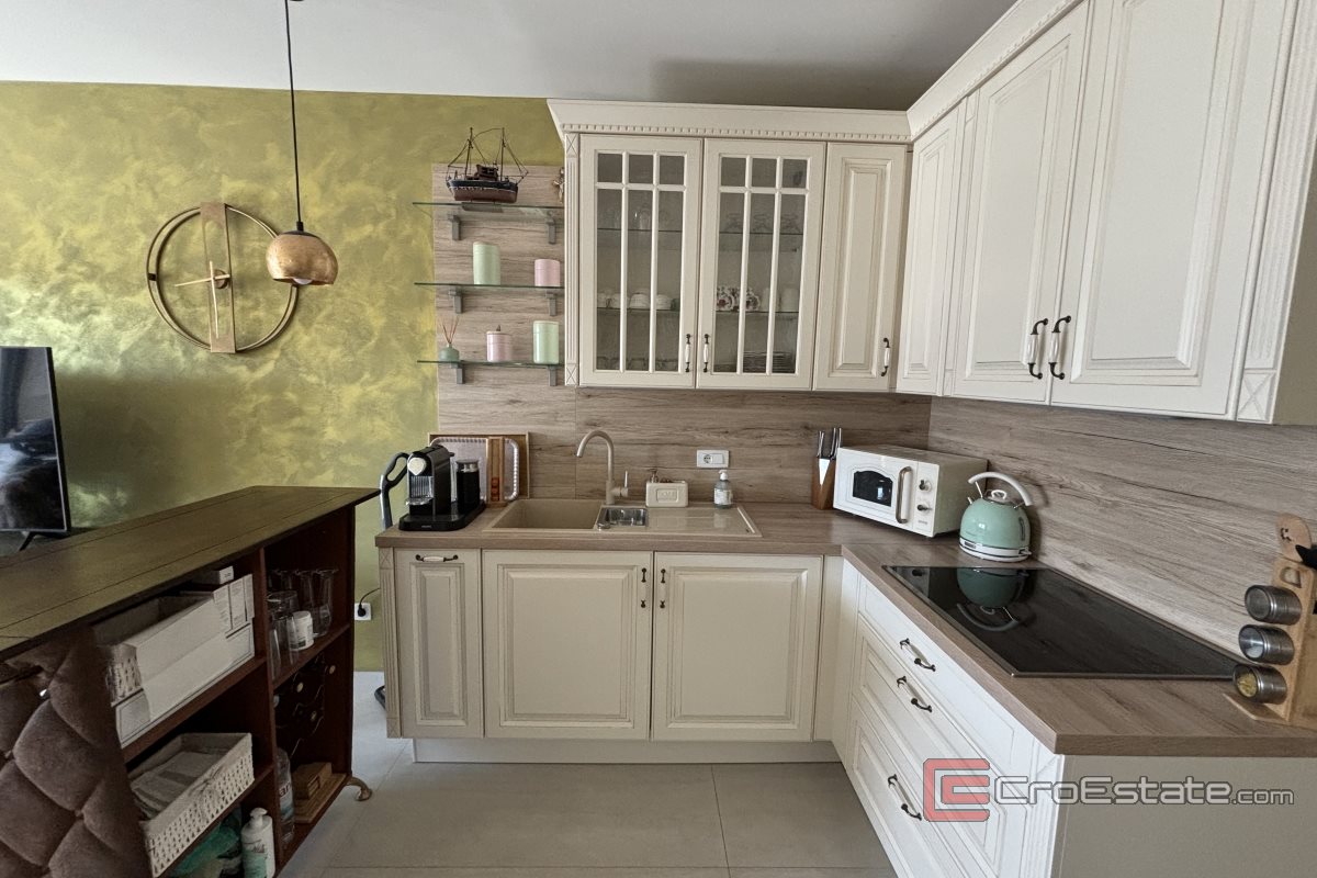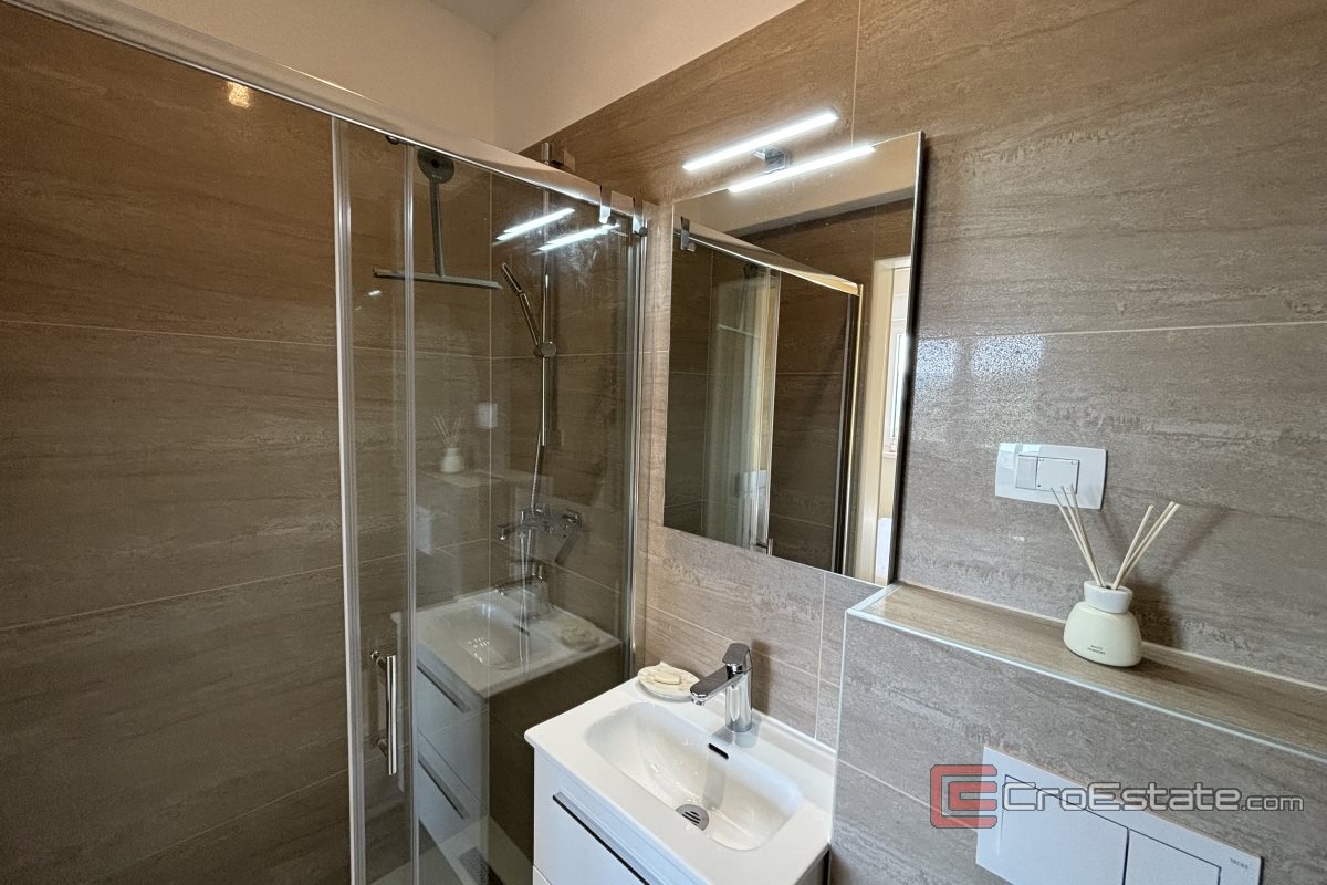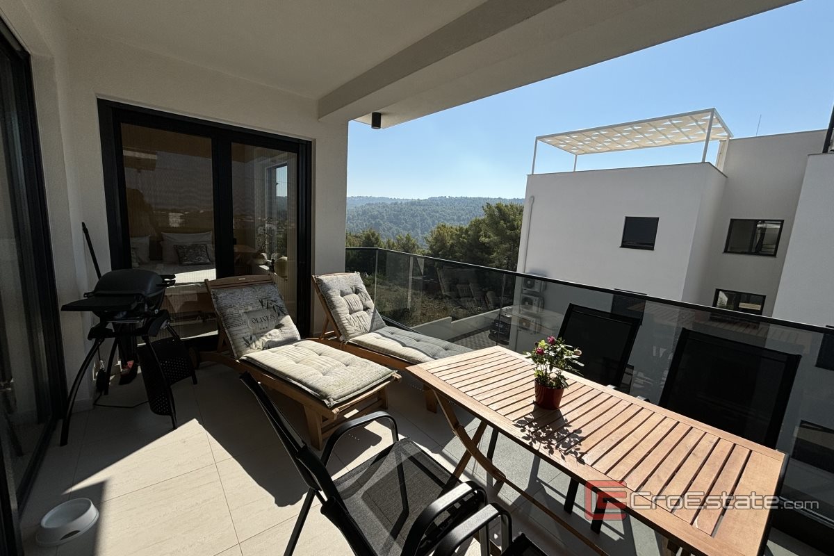 Un appartement de deux chambres à vendre à Okrug Gornji dans un immeuble nouvellement construit. L'appartement est situé à proximité de toutes les commodités nécessaires à une vie et des vacances de qualité (boulangerie, supermarché, plages, cafés, pharmacie) et dispose d'une vue partielle sur la mer.