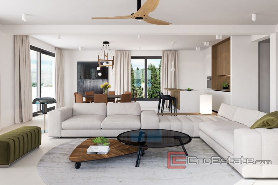 Un immeuble moderne avec plusieurs appartements est en construction sur le côté sud de l'île de Čiovo. Dans un excellent emplacement, il sera entouré de bâtiments similaires plus récents et les appartements auront une vue sur la mer. L'installation est orientée à l'ouest et l'accès est assuré par l'une des routes principales de l'île.
