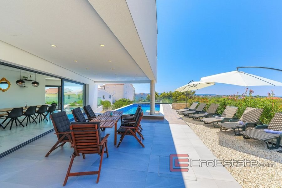 Villa moderne nouvellement construite avec piscine située sur le côté sud de l'île de Ciovo.