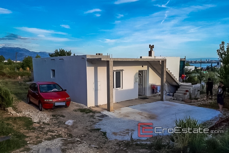 Maison individuelle inachevée située à Kastela, à proximité du port de plaisance, avec vue dégagée sur la mer.