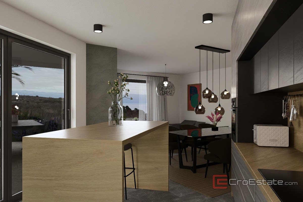 Dans un quartier calme de Vrbnik, à seulement 350 mètres de la mer, nous vous proposons un appartement neuf avec une magnifique vue sur la mer. Situé au premier étage, cet appartement de 100 m² comprend un séjour ouvert avec cuisine et salle à manger, trois chambres, deux salles de bains, des toilettes supplémentaires et une grande terrasse avec vue sur la mer. L'immeuble a été construit avec une attention particulière portée à la qualité : toutes les pièces seront climatisées, des matériaux éprouvés et des équipements modernes sont en cours d'installation. Chaque appartement dispose de deux places de parking. La fin des travaux est prévue pour l'été 2026. Situé à 800 mètres du centre de Vrbnik, il offre calme et intimité, tout en étant bien desservi par toutes les commodités de la ville.