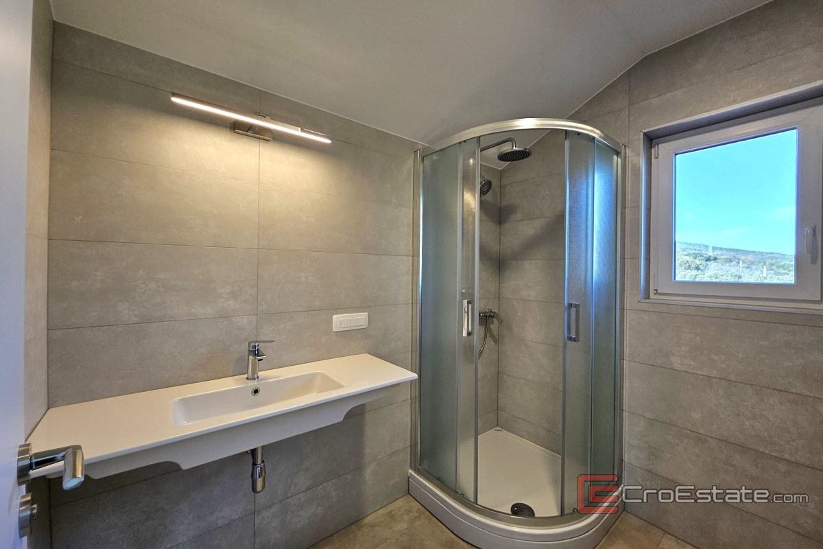 À Nerezine, sur l'île de Lošinj, une maison individuelle d'une surface habitable de 115 m² est à vendre sur un terrain de 780 m². Cette propriété récente (2024) est située dans un quartier résidentiel calme et offre une vue sur la mer.
