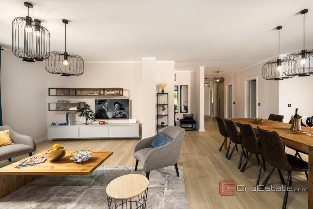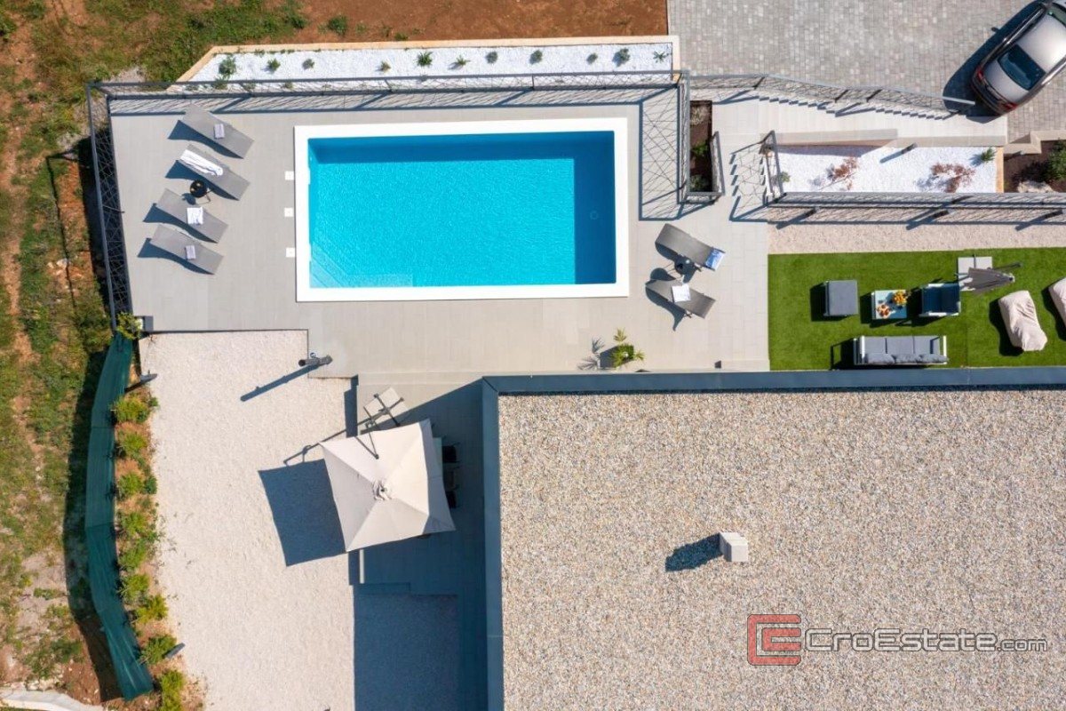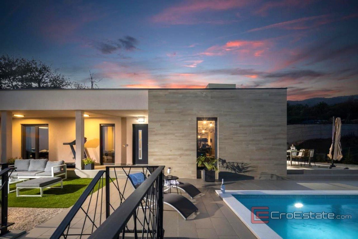 Le jardin est aménagé et aménagé pour le plaisir : une terrasse couverte avec coin repas s'ouvre sur la vue environnante, et la piscine de 32 m² occupe la place centrale. La villa est entièrement climatisée, équipée du chauffage au sol et du Wi-Fi dans chaque pièce, garantissant un confort moderne. Son emplacement et son équipement en font une propriété idéale pour une vie de famille tranquille ou des vacances en toute intimité.