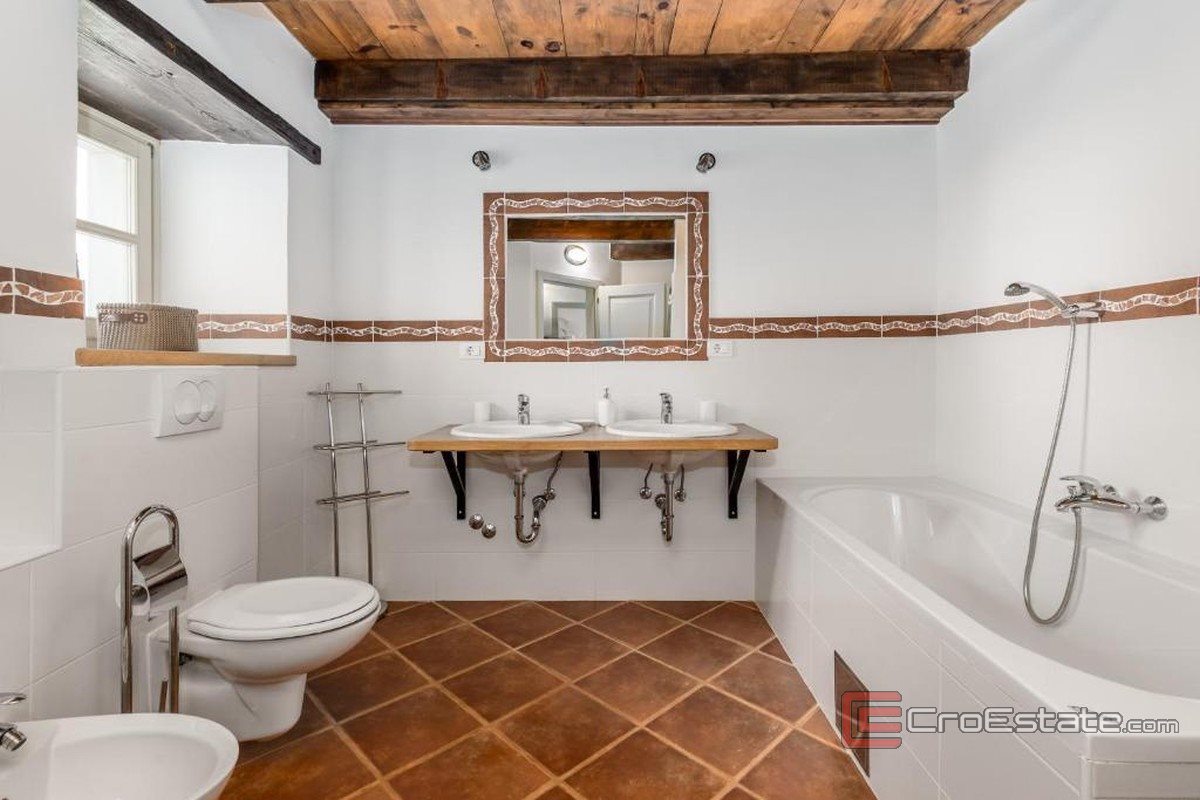 Au cœur de l'Istrie, dans la paisible ville de Tinjan, une maison en pierre d'Istrie rénovée est à vendre. D'une superficie de 300 m², elle allie tradition et modernité. Implantée sur un terrain de 700 m², cette propriété offre une intimité et une tranquillité absolues, tandis que le jardin soigneusement aménagé offre une atmosphère chaleureuse et confortable. L'intérieur comprend trois chambres spacieuses et climatisées, chacune avec sa propre salle de bains, son dressing et son balcon donnant sur la verdure et une vue partielle sur la mer. Le grand salon avec cheminée est relié à la cuisine et à la salle à manger, créant un espace idéal pour les réunions de famille et la détente.