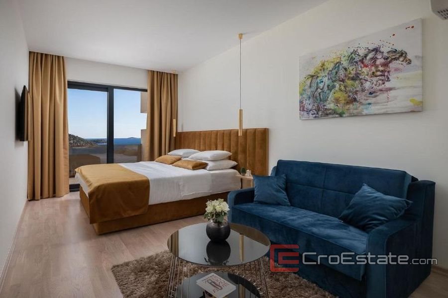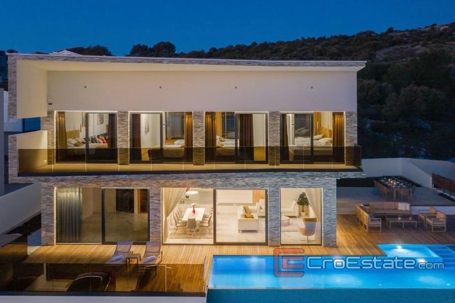 La villa avec vue dégagée sur la mer est située dans une partie qui a été construite avec des villas de luxe pour la plupart plus petites à Rogoznica.