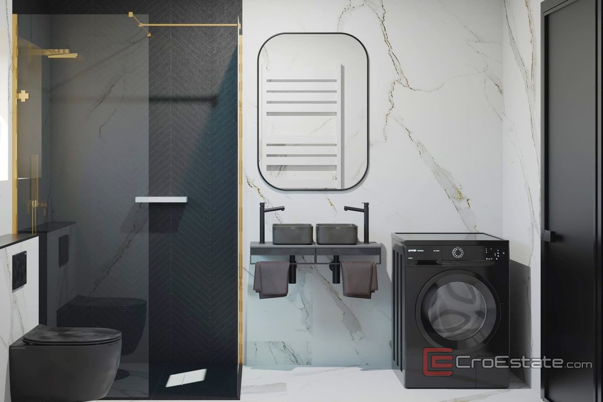 Deux appartements penthouse à vendre près de la mer avec plusieurs places de parking. La superficie nette utile de l'appartement de 120 m2 comprend trois chambres dont une en suite, deux salles de bains, une cuisine, une salle à manger et un salon décloisonné. L'appartement dispose également d'une loggia avec vue dégagée sur la mer, et on a veillé à ce que l'appartement bénéficie de suffisamment de lumière naturelle, ce qui est rendu possible par les grandes parois vitrées.
