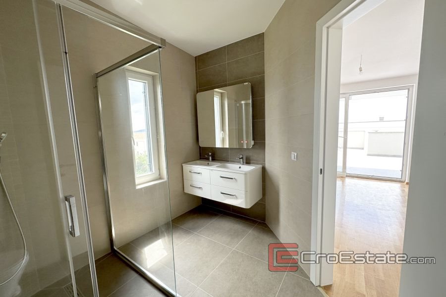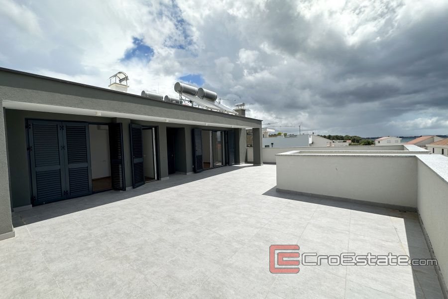 Penthouse dans un nouveau bâtiment non loin du centre de Zadar, est une propriété idéale pour ceux qui recherchent une combinaison d'intimité, de paix et de vie simple au bord de la mer.