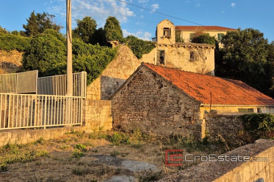 In vendita due case in pietra in rovina, un garage e annessi in una località sull'isola di Brač, a 6 km in linea d'aria dal porto dei traghetti.