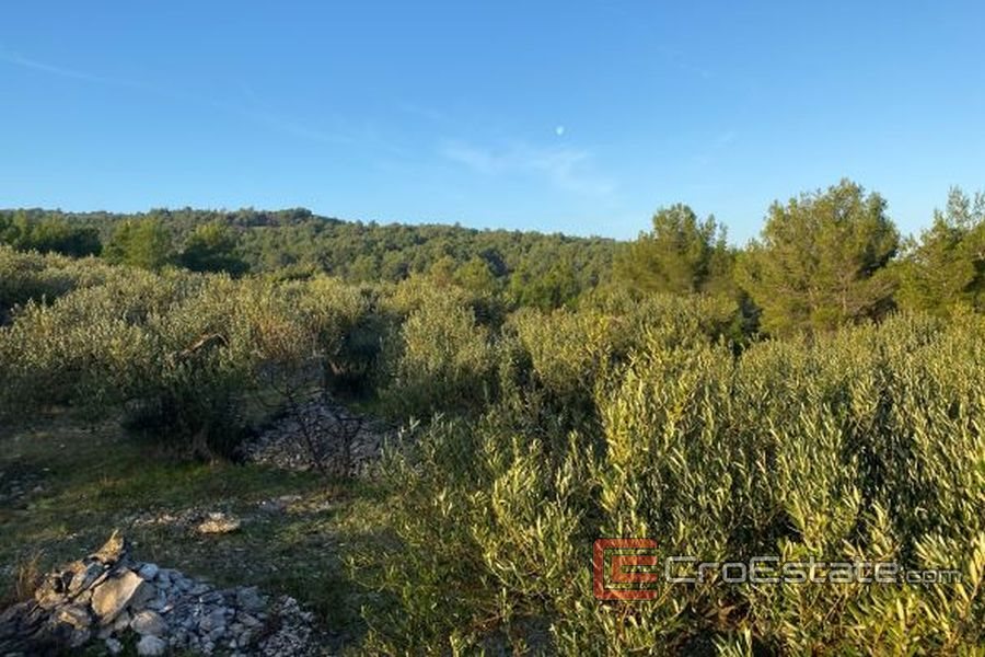 Un terreno agricolo con una superficie totale di 38.934 m² si trova sull'isola di Brač, a 480 m dal mare e a 10 minuti di auto da Supetar.