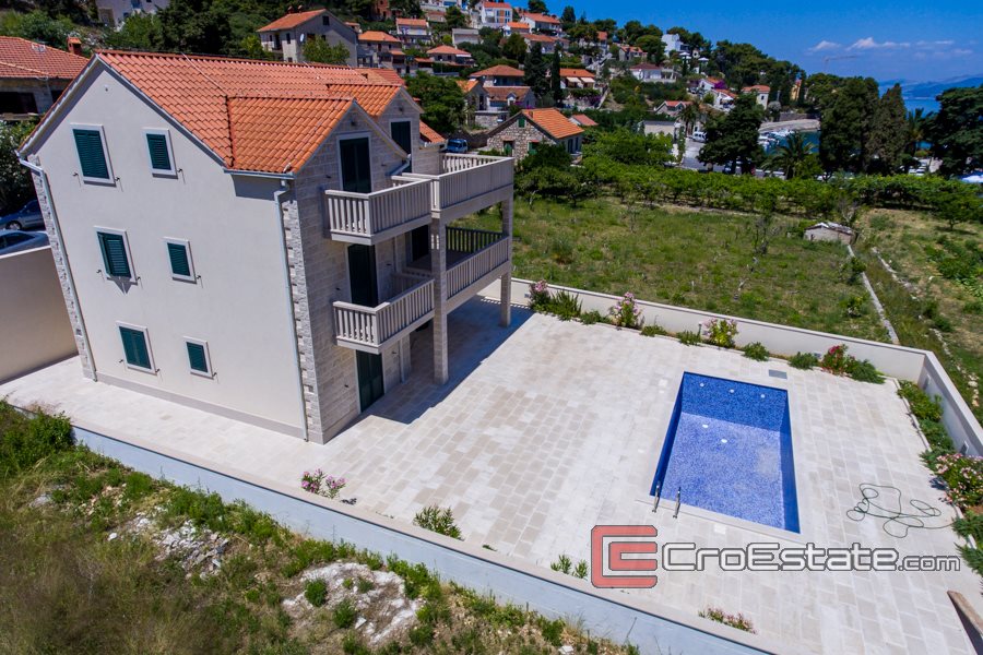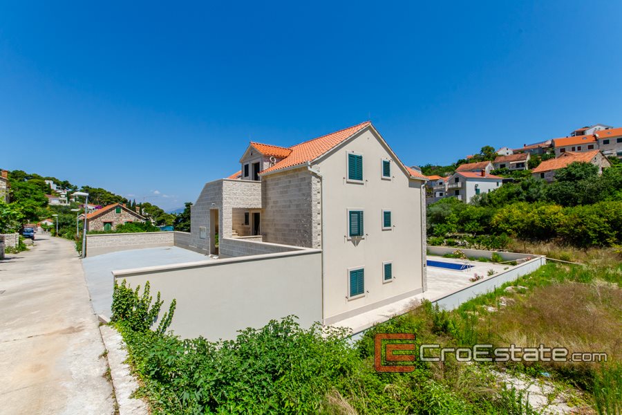 Casa in pietra di nuova costruzione su 3 piani, situata nel centro di un piccolo paese sull'isola di Brac. Tutti i piani hanno vista mare.