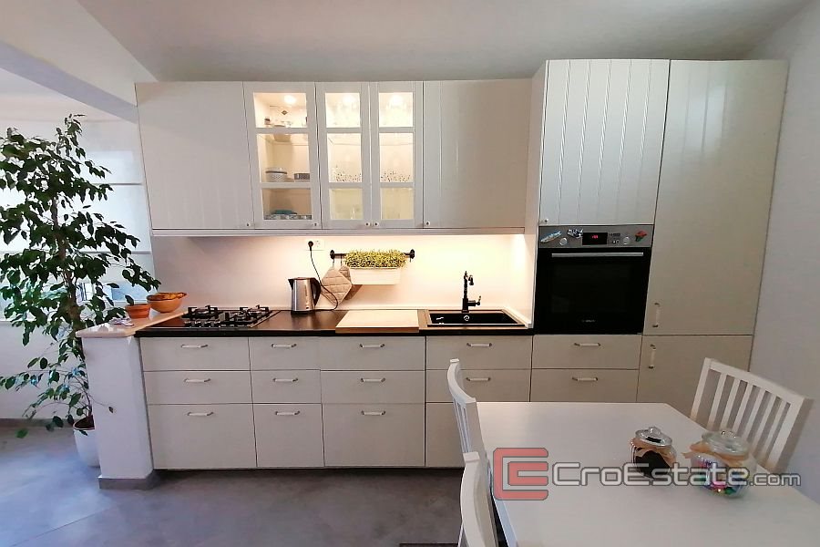 Al primo piano ci sono tre appartamenti con una camera da letto, un monolocale e un ampio balcone con camino esterno.