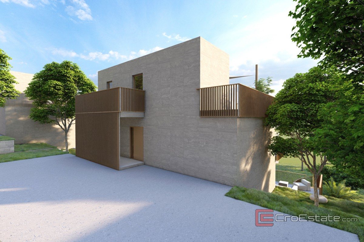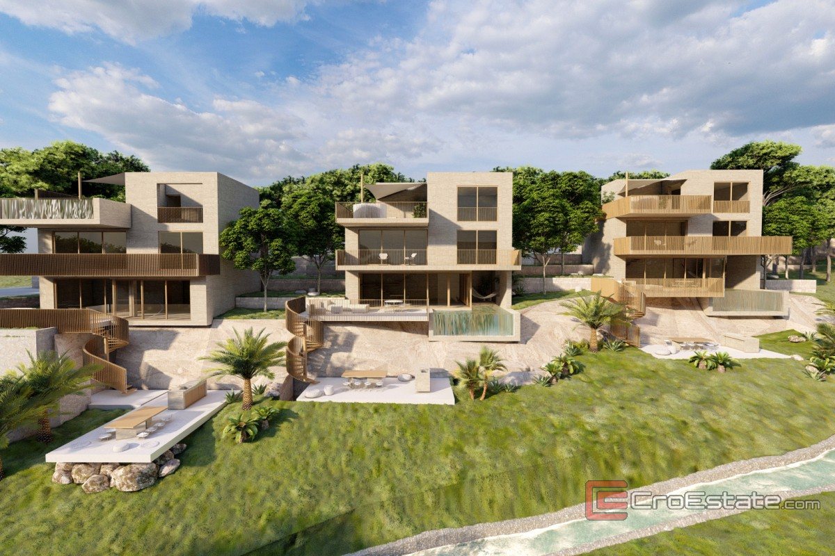 Terreno edificabile estremamente attraente con progetto per la costruzione di tre ville moderne con piscina, situate in un ambiente tranquillo e piacevole. Il terreno si trova in posizione leggermente elevata rispetto alla strada principale e offre una splendida vista sul mare. La superficie totale del terreno è di 1970 m², con una strada di accesso sicura lungo l'intero lotto.