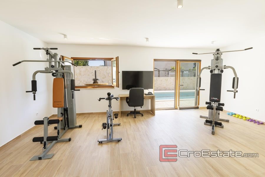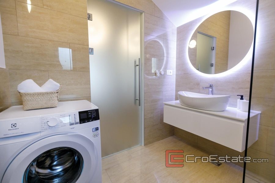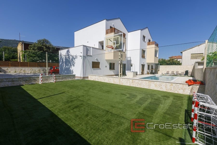 La villa urbana situata a Kaštela offre un'esperienza indimenticabile che combina il comfort contemporaneo con il tradizionale fascino mediterraneo. Superficie abitabile di 450 m2 e terreno di 712 m2.