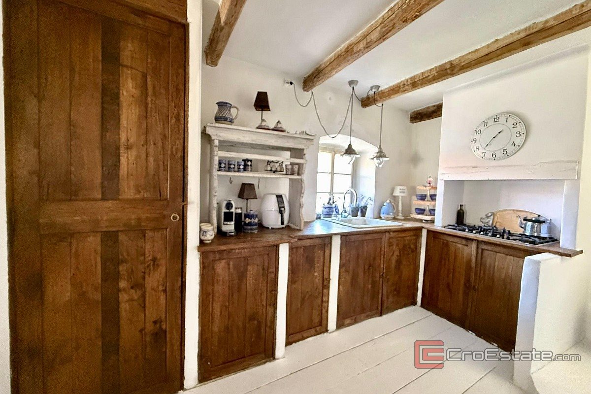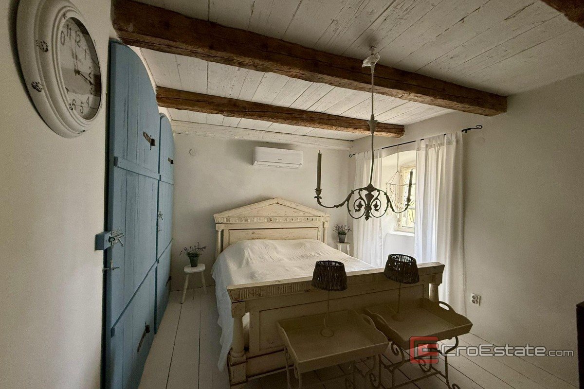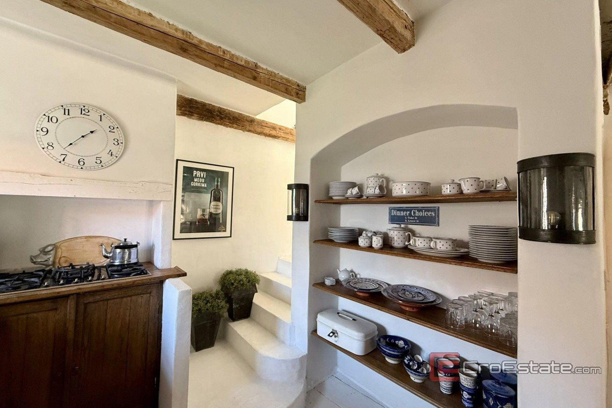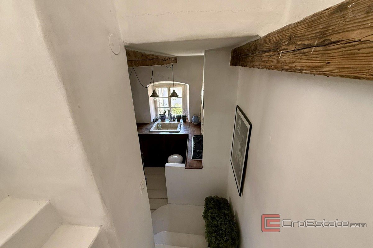 In vendita un'autentica casa in pietra ristrutturata, a schiera, situata nel centro storico di Vrbnik. Con una superficie totale di 120 m², è composta da due appartamenti separati. Al piano terra si trova un monolocale con cucina, bagno e zona notte. Al primo piano, raggiungibile tramite scala esterna, si trova un appartamento su due piani collegato tramite scala interna. Il primo piano comprende un corridoio, una camera da letto e un bagno, la seconda cucina, la sala da pranzo e il soggiorno, e al piano superiore si trova un'ampia terrazza sul tetto con vista aperta sul mare. La casa conserva elementi tradizionali in pietra e uno stile rustico, con una ristrutturazione di qualità e comfort moderni come aria condizionata e camino. L'immobile è adatto per vacanze, residenza o affitto turistico.