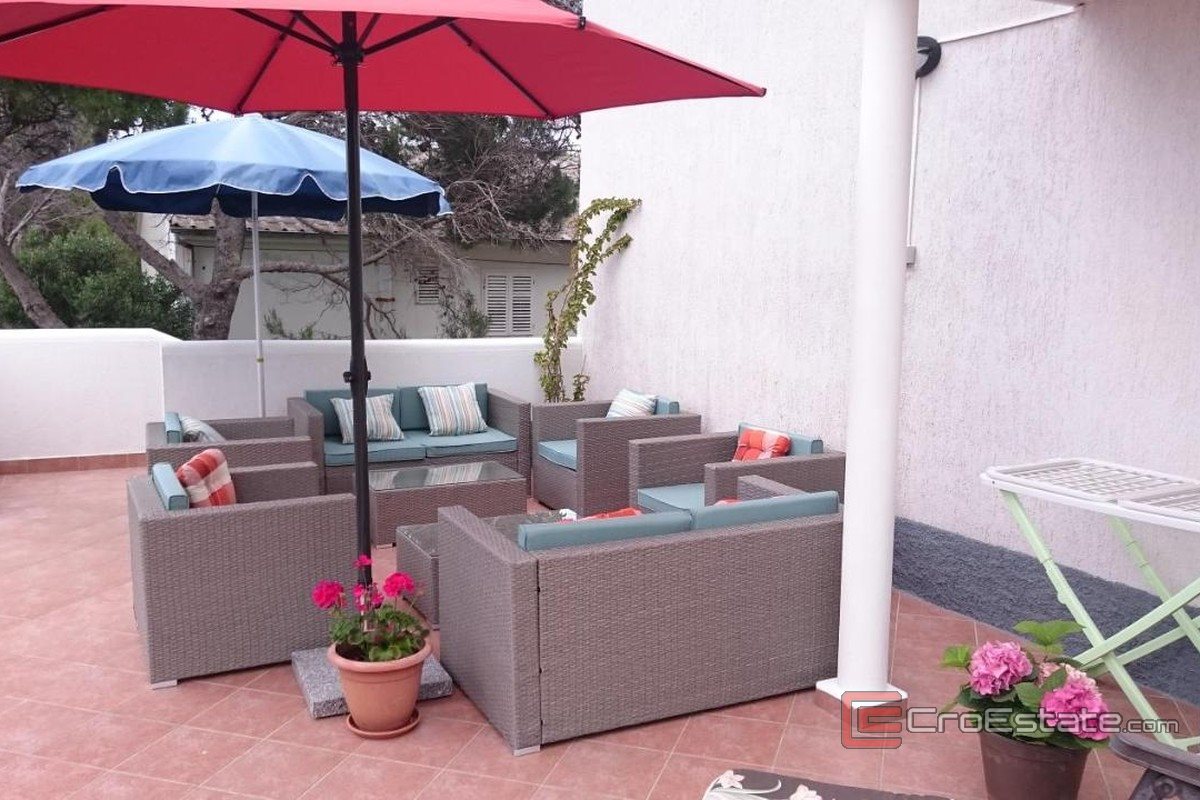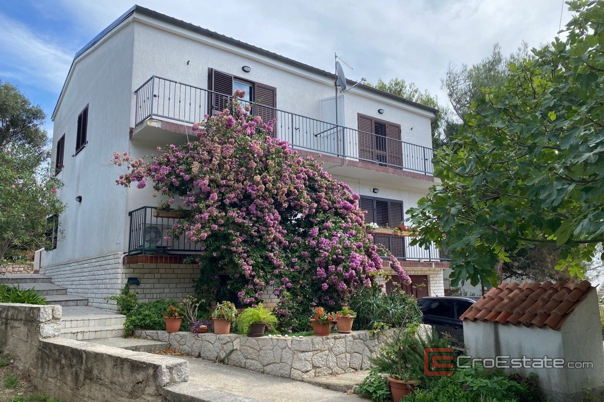 La casa si trova a Lussinpiccolo, a circa 80 metri dalla costa, con vista mare. Si tratta di un edificio indipendente su più piani, da ristrutturare, che offre la possibilità di adattare lo spazio abitativo. Al piano terra ci sono due ampi garage e ulteriore spazio utilizzabile a seconda delle esigenze. Il primo piano è un trilocale, mentre il secondo piano ospita camere con bagno. La casa dispone di balconi e terrazza, e il terreno consente di parcheggiare diverse auto e di organizzare lo spazio esterno a proprio piacimento.