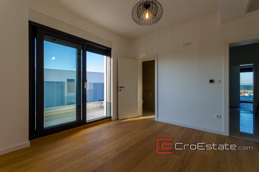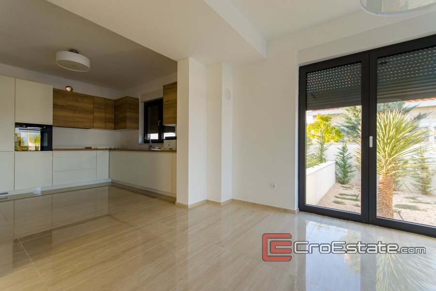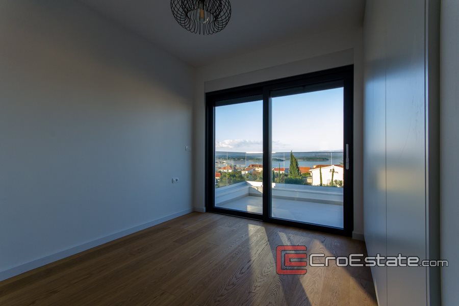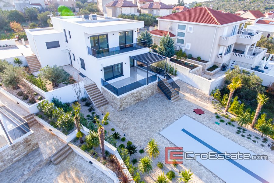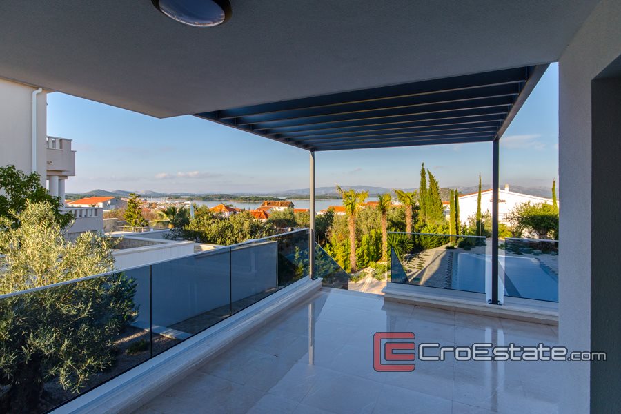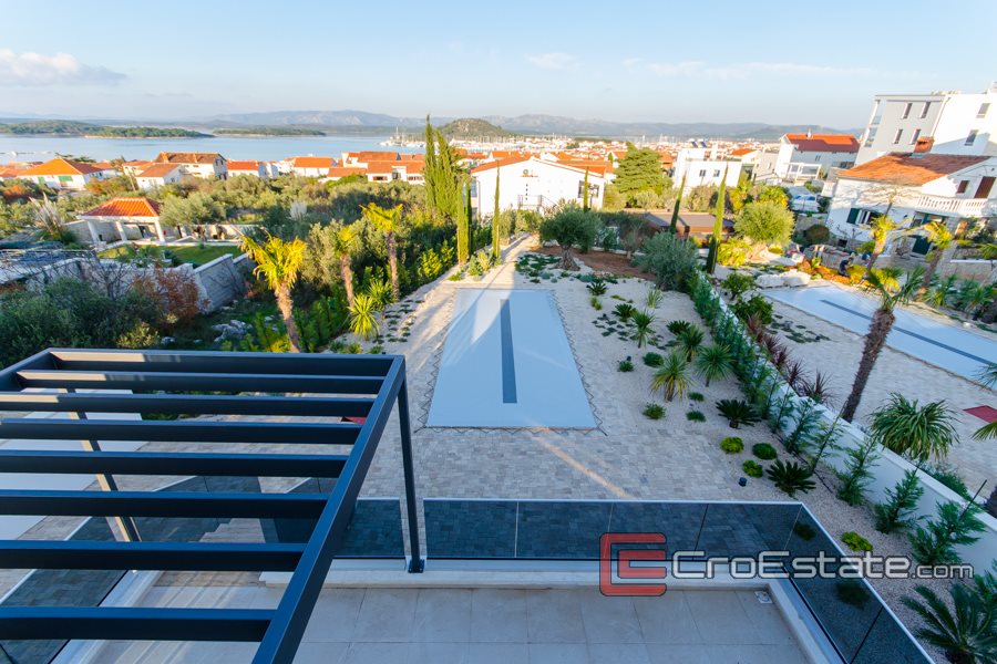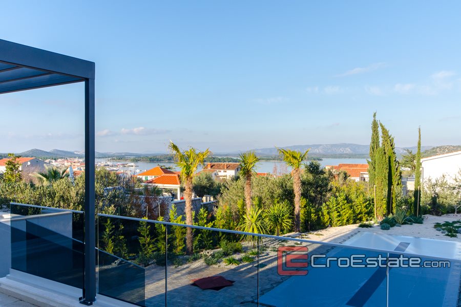 Villa di lusso costruita nel 2020 su un terreno di 930 m2, con un giardino paesaggistico o giardino con orticoltura mediterranea autoctona; olive, arance, lavanda e piscina. Ha tre piani che costituiscono 306 m2 della superficie totale di questo bellissimo e moderno edificio nuovo a soli 400 metri dal mare e dalle bellissime spiagge dell'isola di Murter. Poiché è stata costruita su una parte elevata del villaggio, la villa offre una vista panoramica sulla baia di Murter e sul porto turistico.