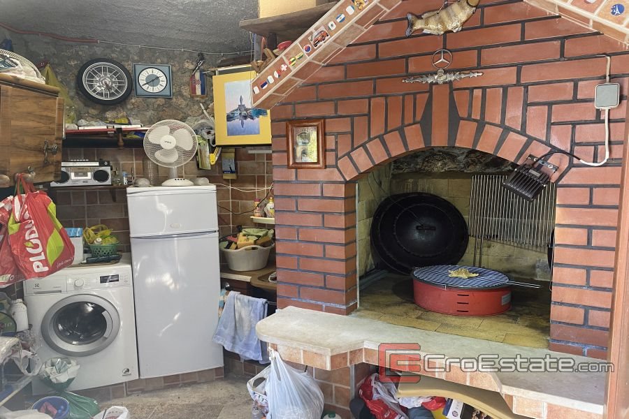 Subito dopo l'ingresso si trovano un ambiente adibito a soggiorno e cucina, due camere da letto, un bagno e l'uscita sul terrazzo con vista mare e isole. Al piano terra c'è un cortile con frutteto e un'area coperta con posto per tavolo e sedie. Dietro la casa c'è una stanza ausiliaria con barbecue e un ripostiglio. C'è anche un giardino dietro la casa, progettato per essere goduto nelle calde giornate estive.