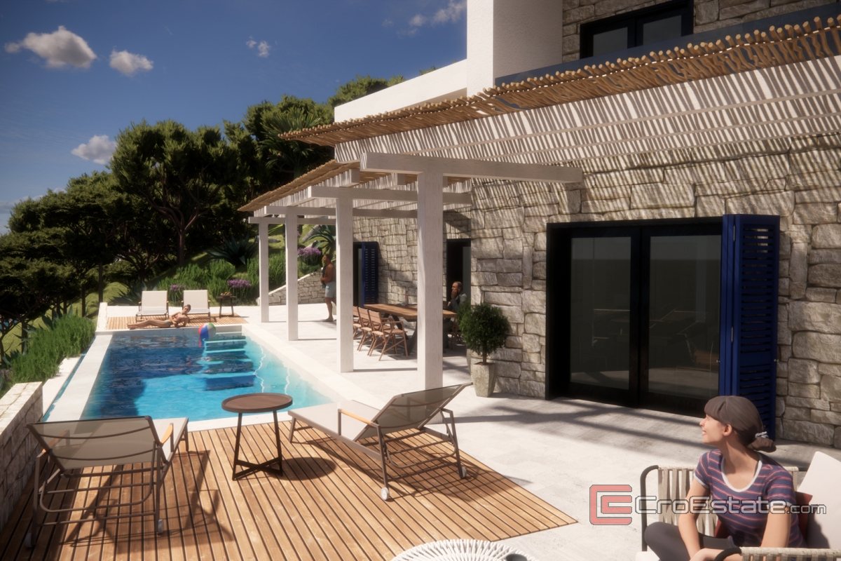 Villa moderna in posizione perfetta in costruzione, con piscina e vista sul mare aperto, in vendita, situata in una posizione prestigiosa sul lato meridionale della penisola di Pelješac.