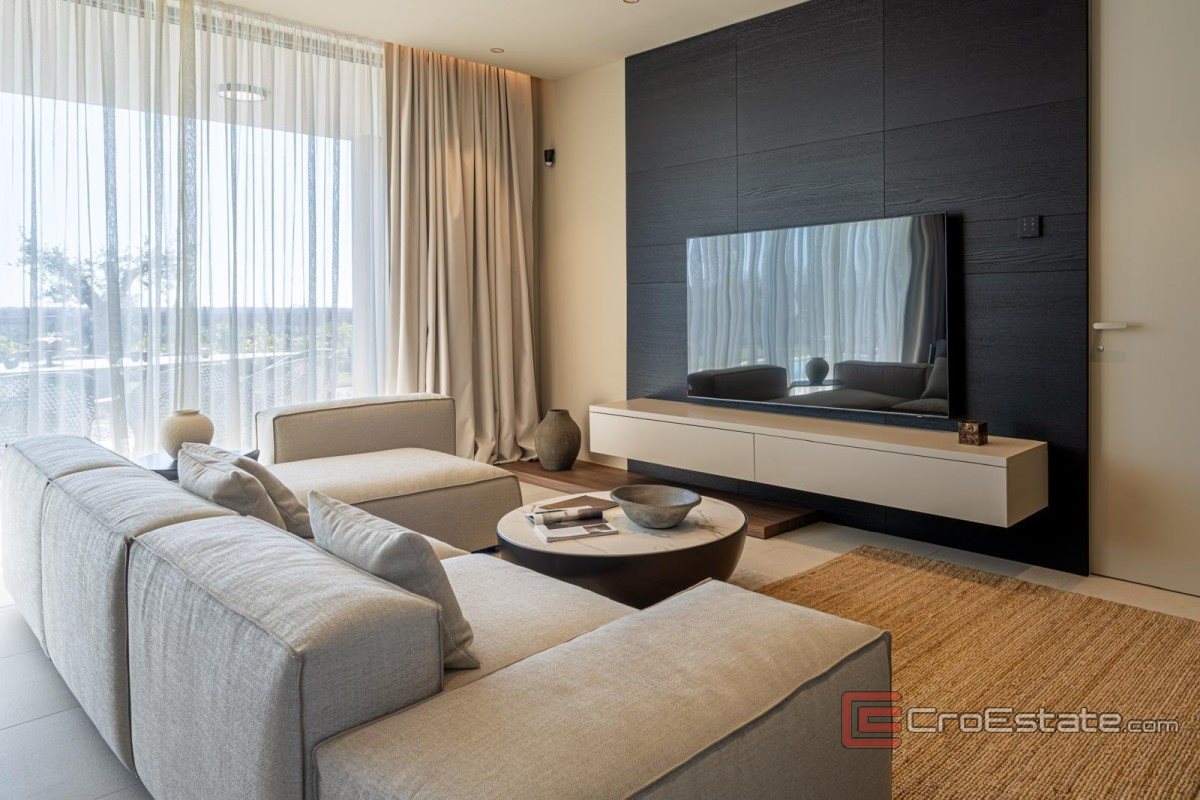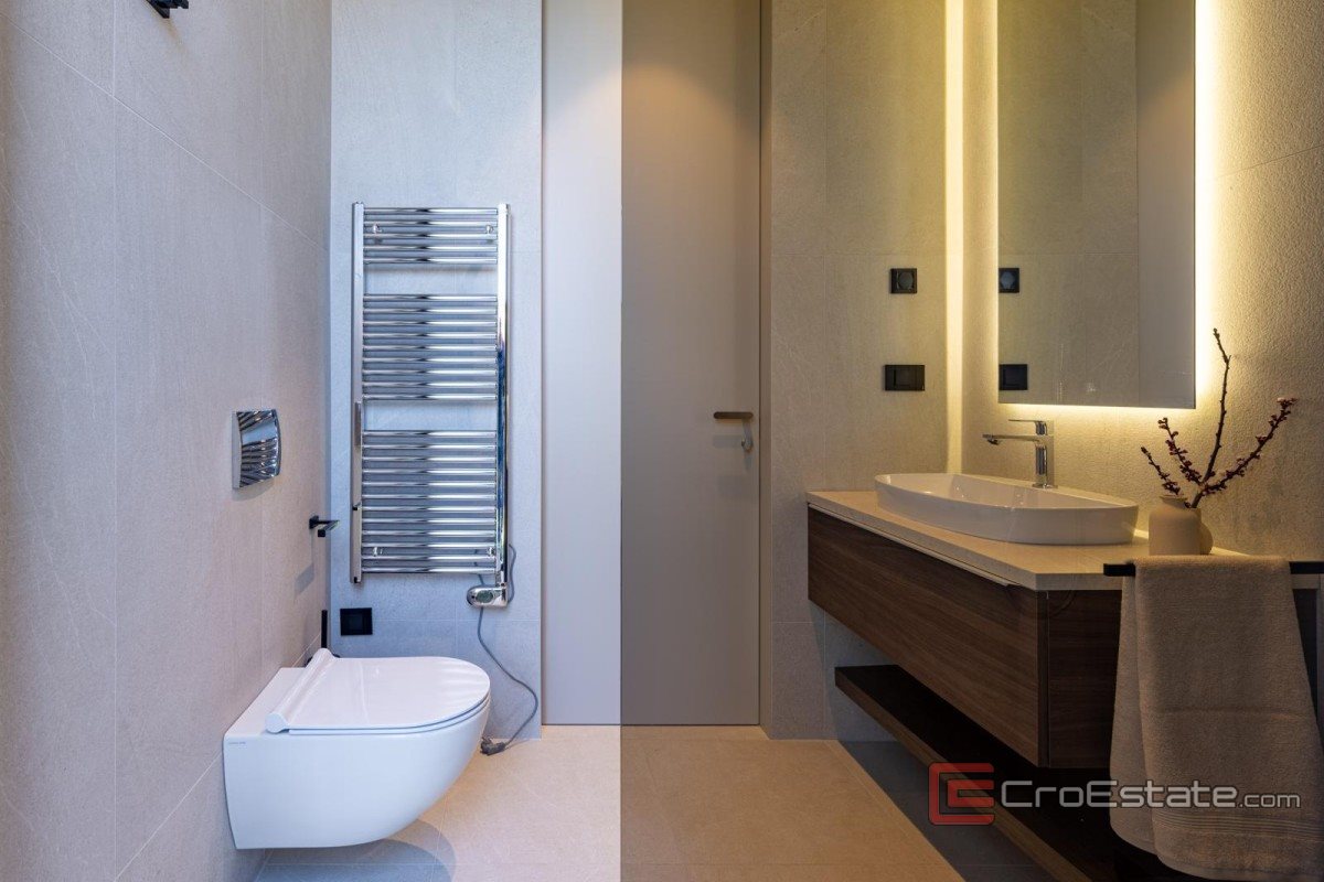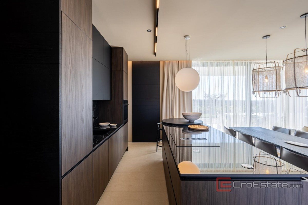 Situata in una zona tranquilla vicino a Parenzo, questa moderna villa su un unico piano rappresenta una soluzione di qualità per chi cerca una disposizione funzionale, un elevato livello di comfort e una casa completamente attrezzata e pronta per essere abitata. Con una superficie totale di 241 m², la villa sorge su un terreno di 803 m² ed è stata progettata ponendo l'accento sulla praticità e sul comfort quotidiano. La parte centrale della casa è composta da un'ampia zona giorno open space che unisce soggiorno, cucina e sala da pranzo, con accesso diretto alla terrazza e a una piscina riscaldata di 38 m². La casa dispone di quattro camere da letto, ognuna con il proprio bagno, garantendo un elevato livello di privacy. È presente anche un bagno di servizio. Nella progettazione e nelle dotazioni sono stati utilizzati sistemi e materiali di alta qualità, tra cui riscaldamento a pavimento con pompa di calore, aria condizionata in tutti gli ambienti e un sistema di gestione intelligente. La villa è completamente arredata e attrezzata, il che ne consente l'utilizzo senza ulteriori investimenti. L'area esterna comprende un giardino paesaggistico, una zona prendisole, una piscina riscaldata e un'area living all'aperto, creando un ambiente funzionale e piacevole.