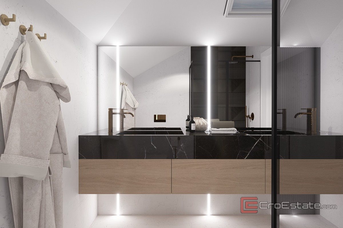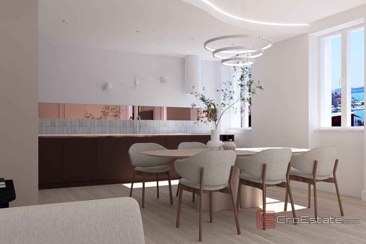 In una posizione eccezionale nel centro di Sebenico, a soli 70 metri dal mare, si trova un lussuoso appartamento di 129 m², situato in un edificio residenziale con ascensore. L'appartamento si distingue per la splendida vista sul mare e sul centro storico della città, che conferisce allo spazio un carattere e un valore speciali.