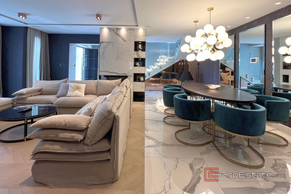 In vendita, villa di lusso in una zona tranquilla della città. La proprietà copre una superficie di 1294 m2, mentre la superficie abitabile della proprietà è di circa 280 m2. La proprietà si sviluppa su due piani e dispone di due posti auto in garage, mentre di fronte alla proprietà c'è un parcheggio per circa nove veicoli.
