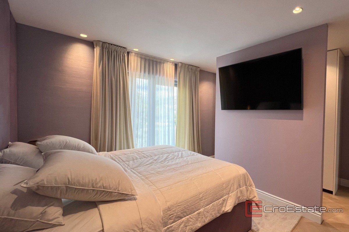 La proprietà dispone di circa nove posti auto e due posti auto in garage. Inoltre, di fronte alla proprietà, c'è una spaziosa piscina e una jacuzzi, uniche nella loro costruzione e che si vedono raramente in Croazia, una terrazza esterna con cucina esterna e una doccia esterna.